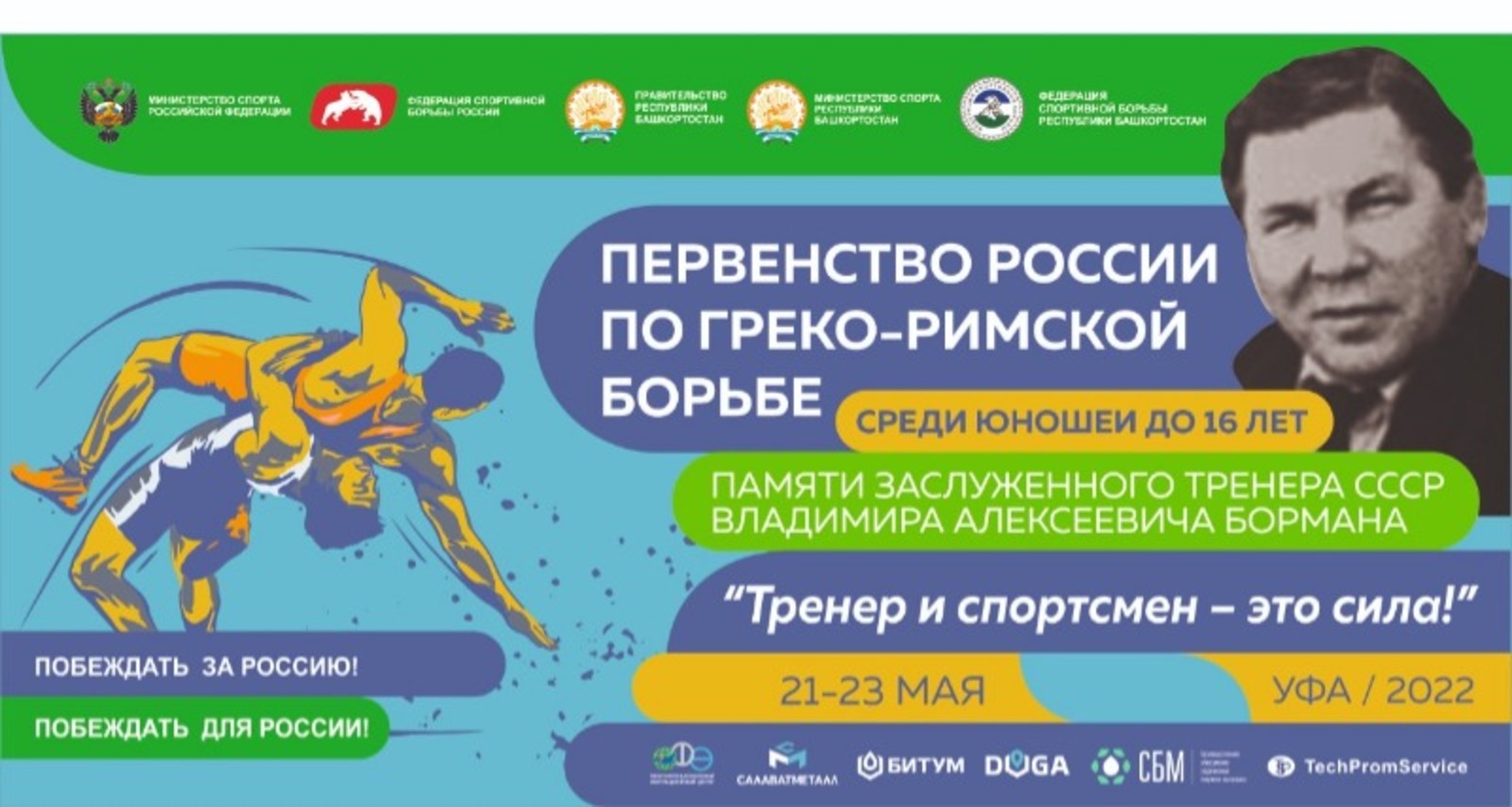 С 21 по 23 мая в Уфе пройдёт первенство России по греко-римской борьбе до 16 лет, 36-й турнир памяти Заслуженного тренера СССР Владимира Алексеевича Бормана.
