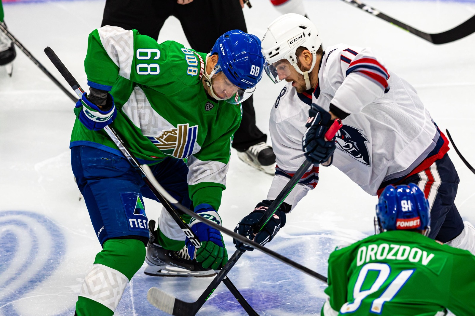 Игра с самого начала получила атакующий характер обеих команд. Уже на пятой минуте гости встречи открыли счет: гол в ворота «Салавата Юлаева» забил Михаил Назаров. Голевая передача Тимура Шарифьянова Егору Морозову завершила первый период со счетом 0:2 в пользу «Нефтехимика».
