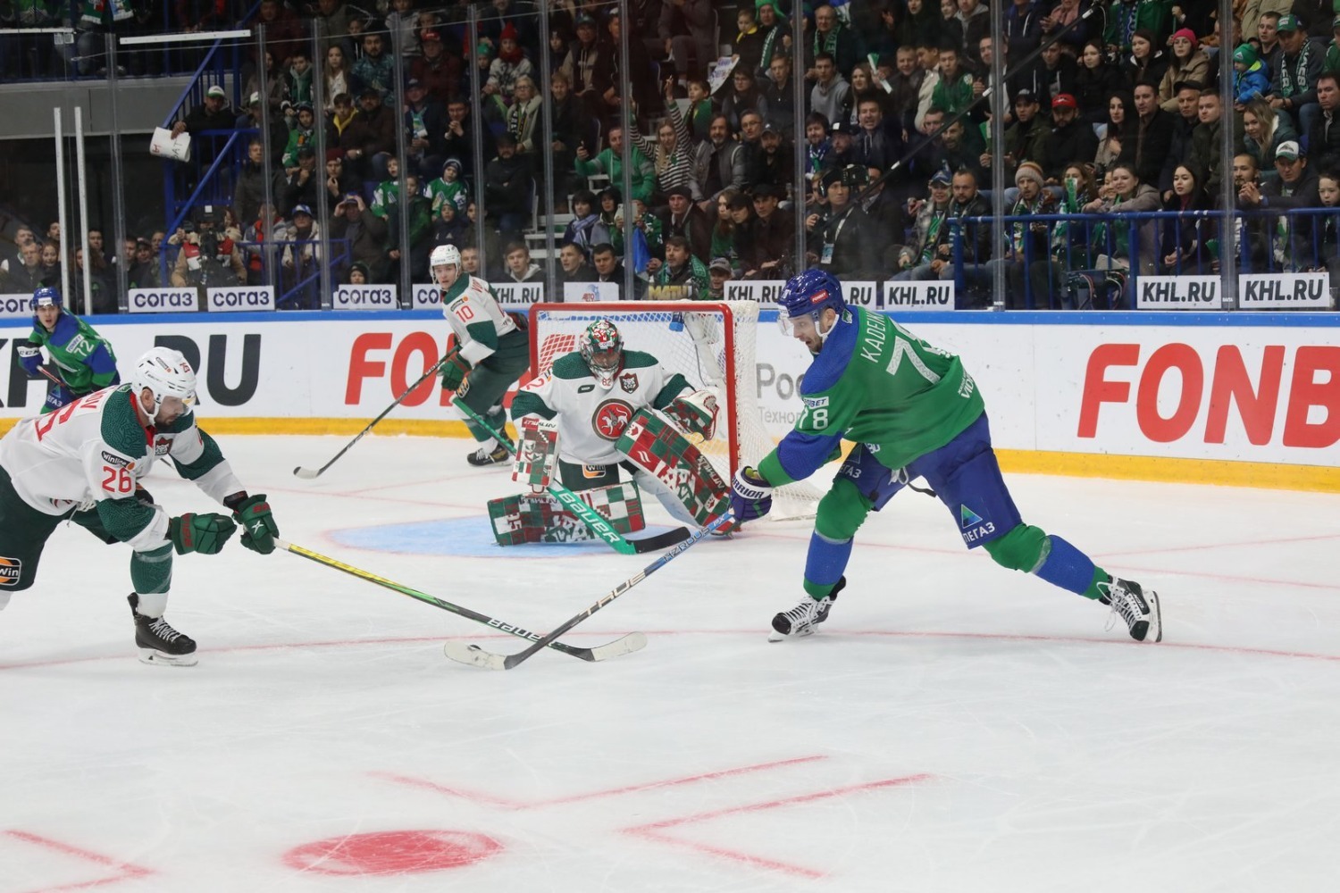 Сегодня ХК «Салават Юлаев» провел первую игру пятой домашней серии Фонбет регулярного чемпионата КХЛ сезона 2022-2023. «Юлаевцы» встретились с казанским «Ак Барсом». Матч завершился со счетом 4:1 в пользу «Салавата Юлаева».
