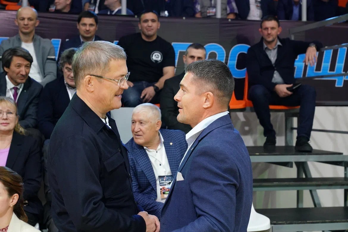 После церемонии открытия Глава Башкортостана вместе с почетными гостями посмотрел полуфинальные поединки в пяти весовых категориях.