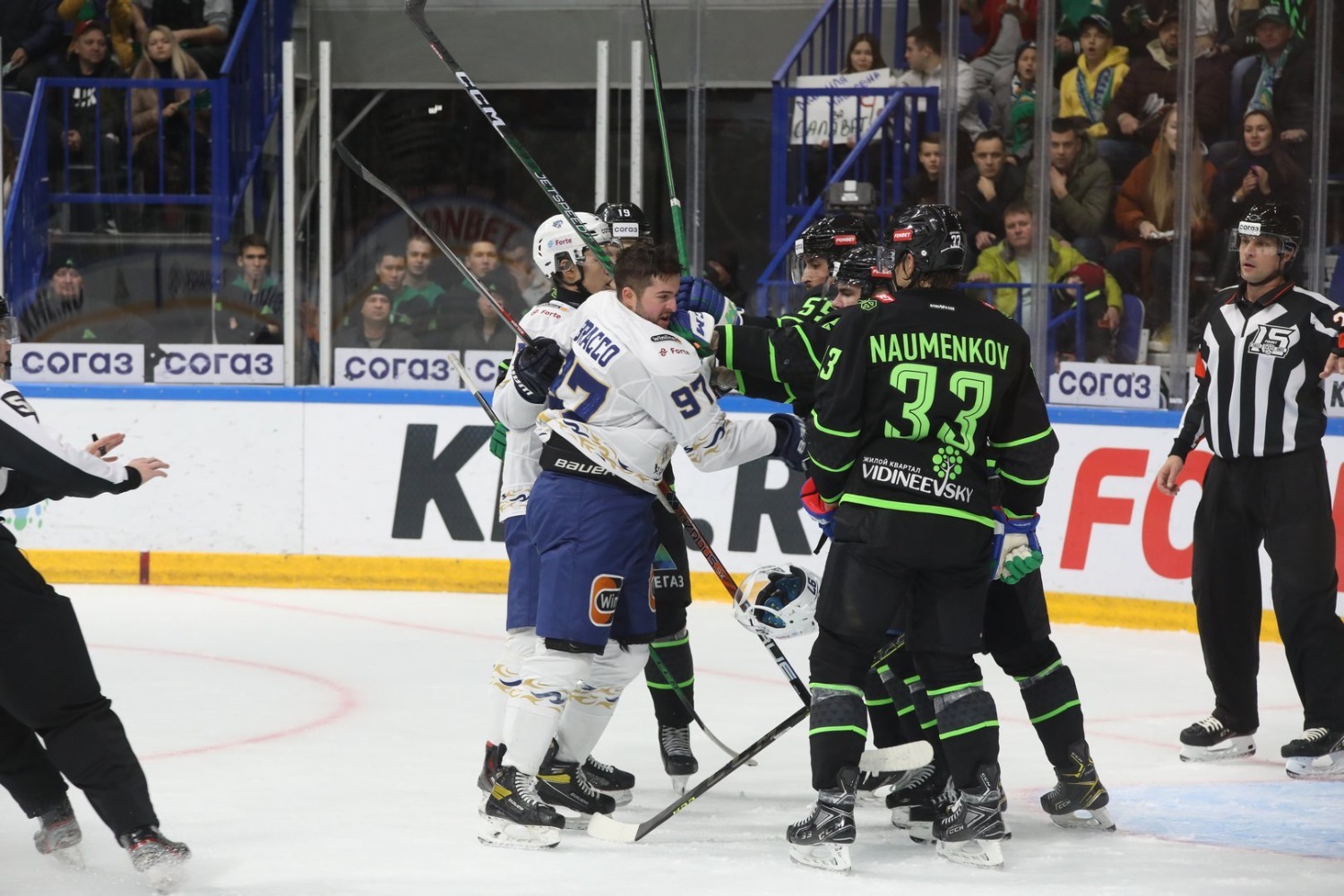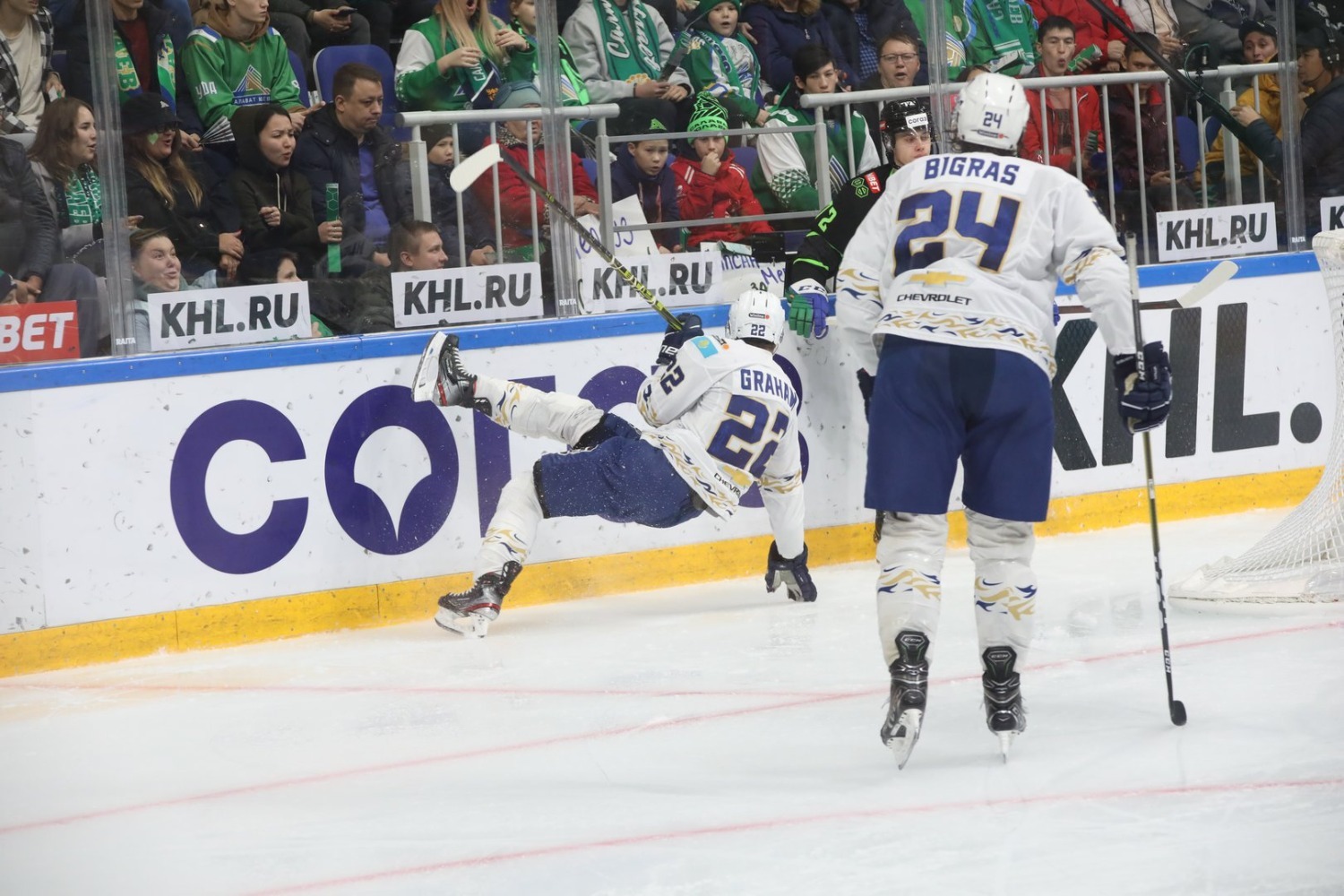 В начале второго периода «Барыс» размочил счет. Ворота Андрея Кареева на 22-й минуте поразил Егор Петухов. 2:1. Однако уже на 25-й минуте гол Сергея Шмелева вновь увеличил отставание астанинцев 3:1. Александр Хмелевски забросил на 33-й минуте — 4:1