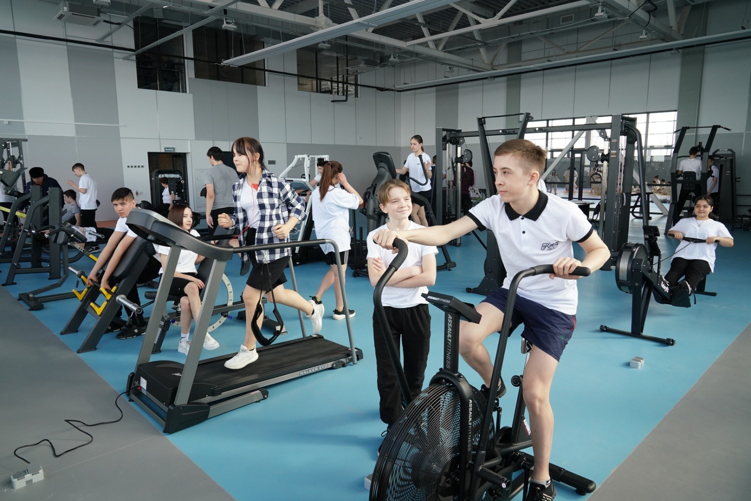 Помимо детей в тренажерном зале смогут заниматься и люди старшего поколения. Рядом с ФОКом построены две открытые физкультурные площадки с искусственным покрытием для тренировочных занятий по игровым видам спорта и для тренажёров с резиновым покрытием.