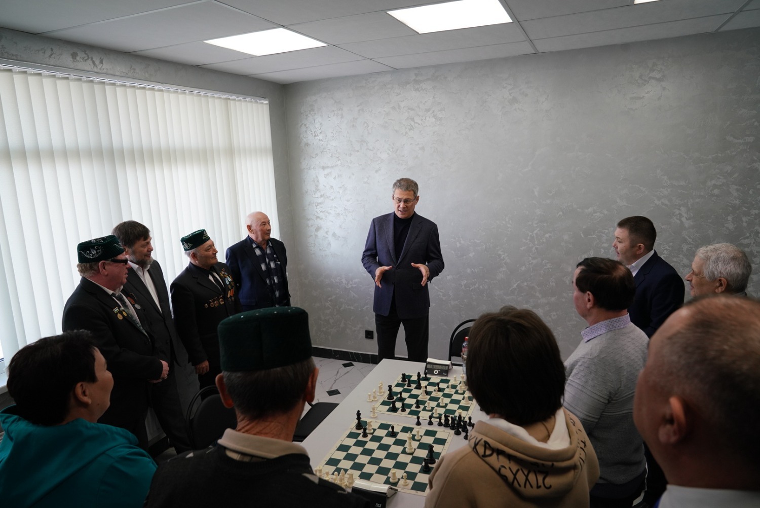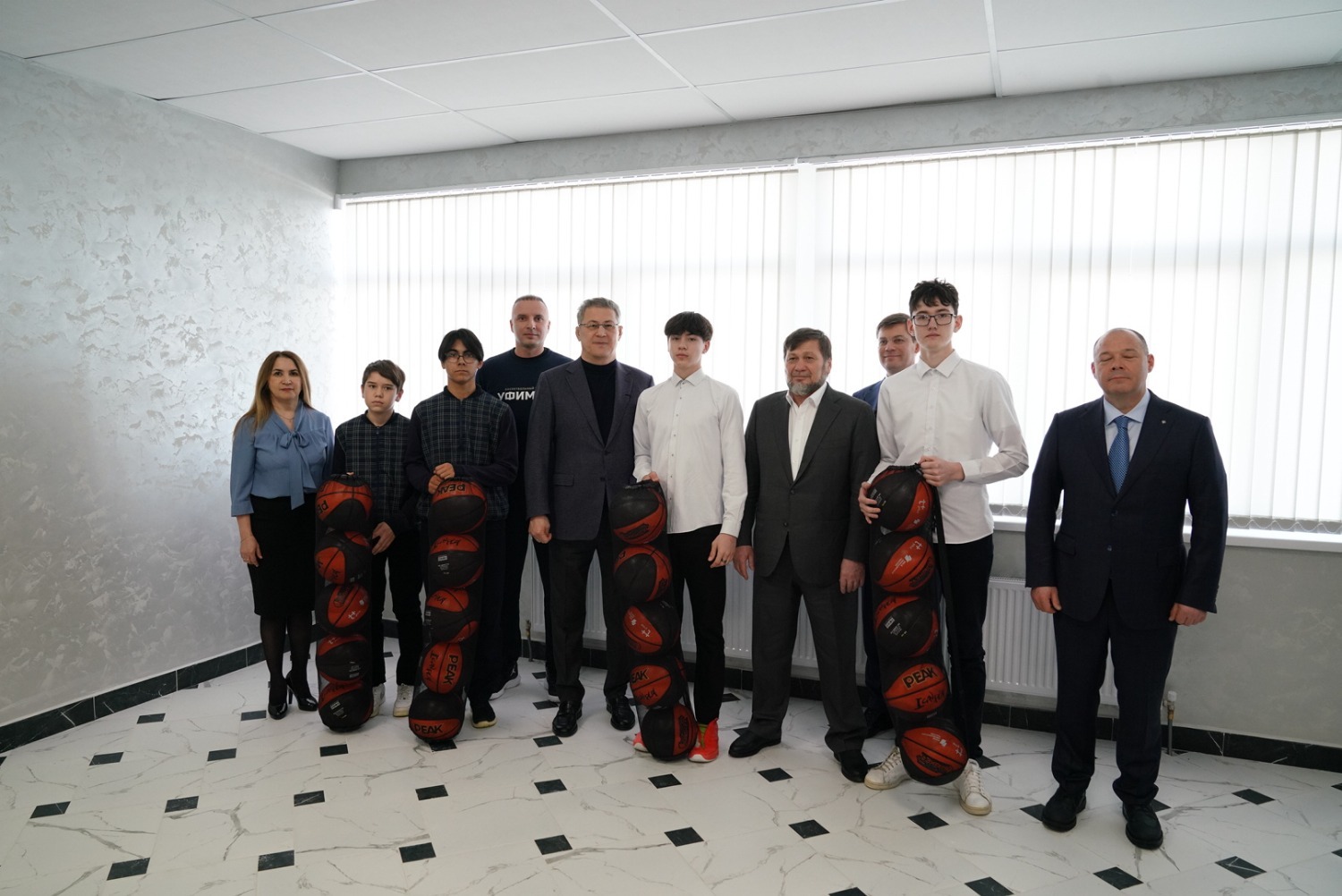 В конференц-зале Радий Хабиров и Одес Байсултанов пообщались с тренерами и юными спортсменами и передали баскетбольные мячи для местной баскетбольной команды. Здесь же оборудована комната для игры в шахматы. Во время общения ветераны спорта поблагодарили Главу республики за такой замечательный подарок жителям Бураевского района.