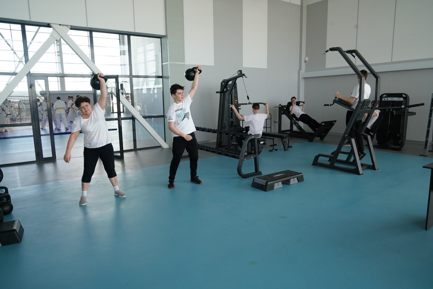 В тренажерном зале мастер-класс для местных ребятишек провел самый сильный человек России Эльбрус Нигматуллин.