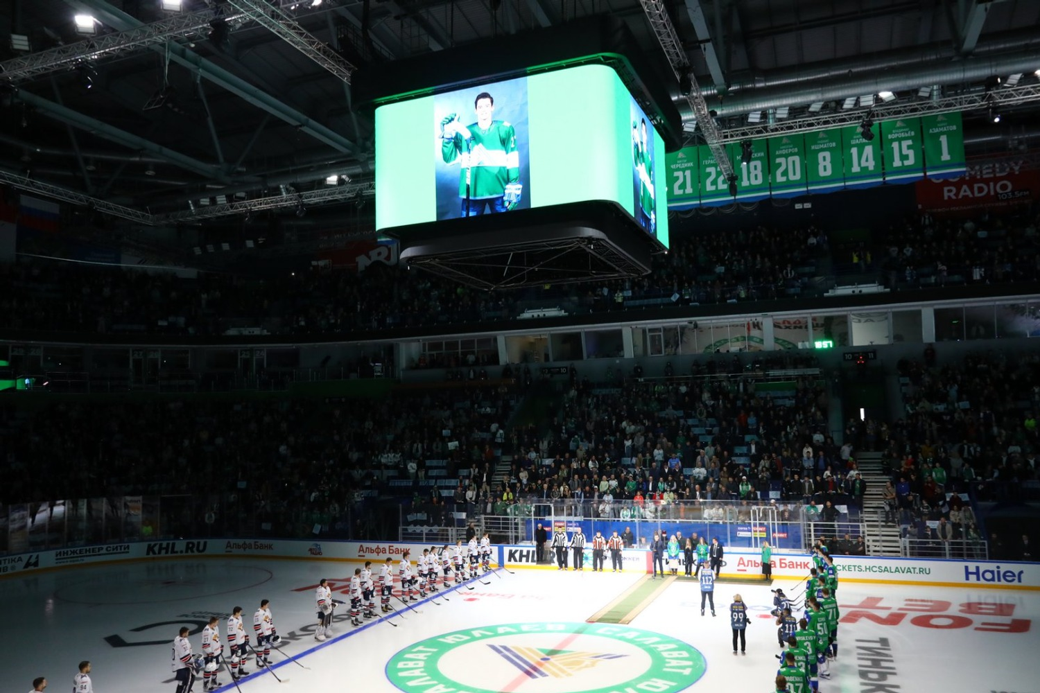 Как сообщал Башинформ, перед этим матчем состоялась церемония поднятия стяга воспитанника «Салавата Юлаева» Родиона Амирова. Хоккеист ушел из жизни 14 августа после продолжительной борьбы с болезнью.
