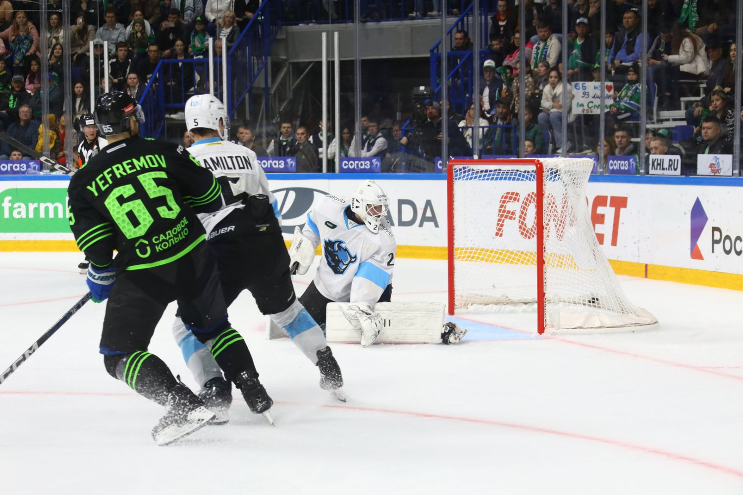 Домашний матч «Салавата Юлаева» с минским «Динамо» завершился победой хозяев со счётом 4:2.
