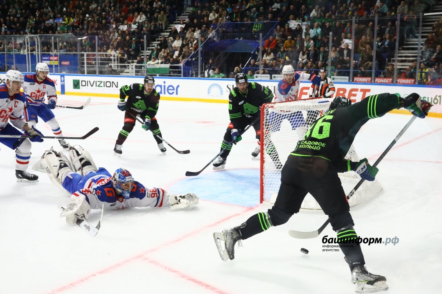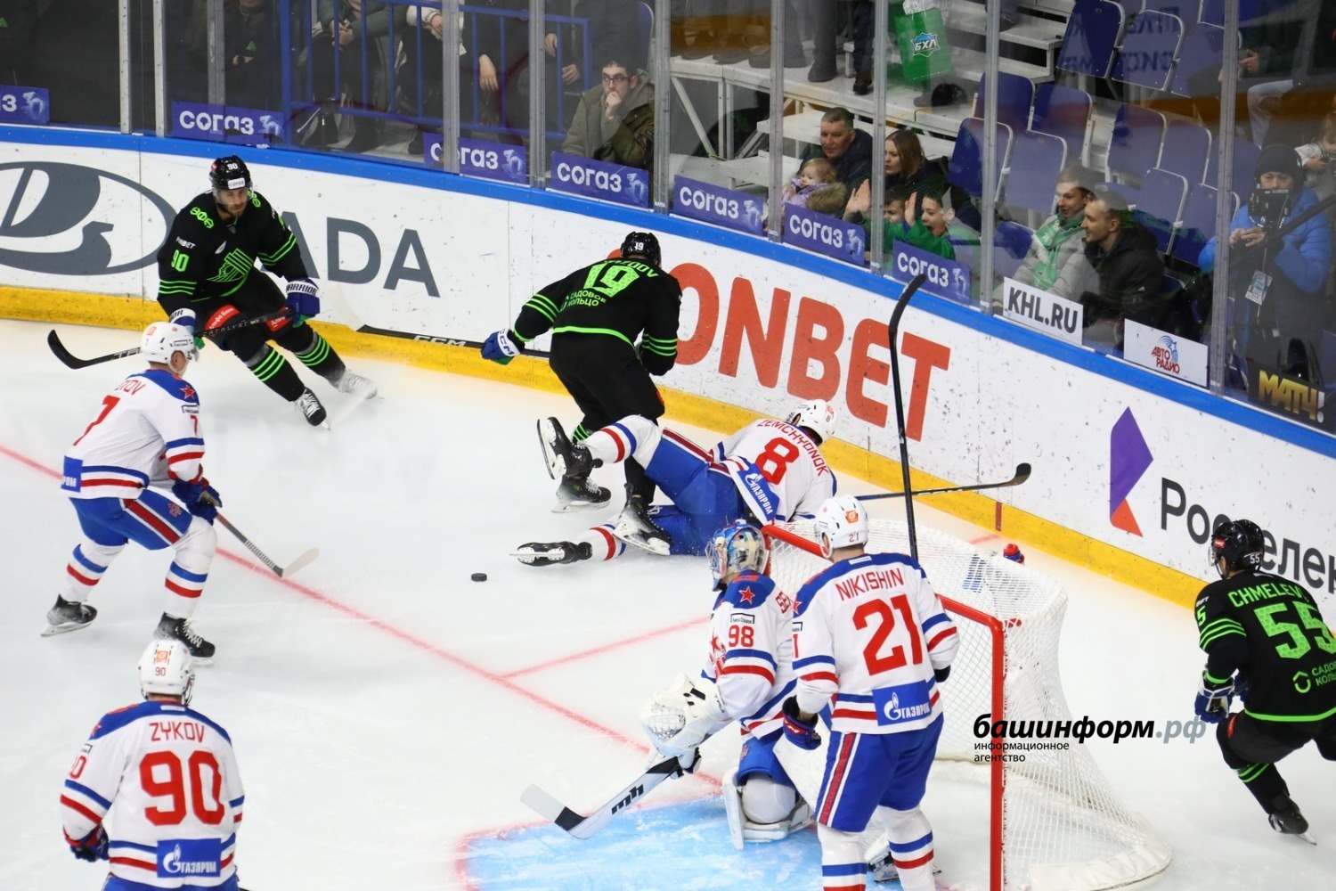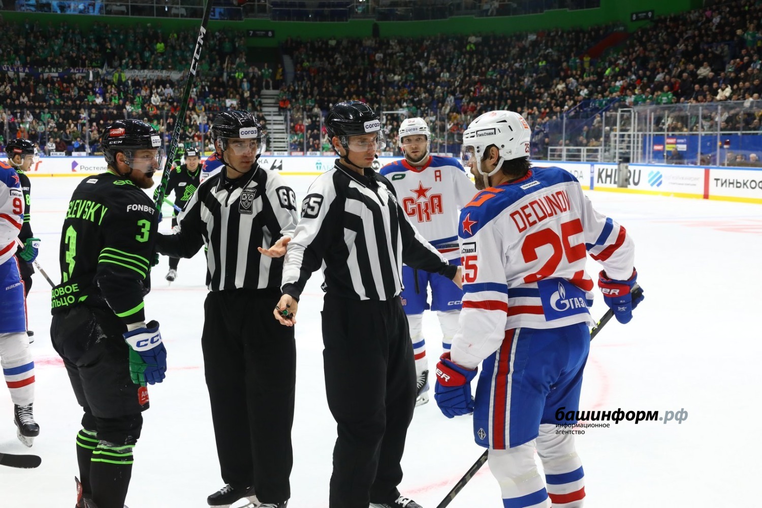 «Салават Юлаев» в матче регулярного чемпионата КХЛ дома уступил СКА со счётом 3:4. В стартовые минуты гости заработали большинство, которое реализовали спустя 28 секунд. Хорошая возможность сравнять счёт была у Егора Сучкова и Динара Хафизуллина, но защитнику уфимцев не удалось переиграть вратаря. На 17-й минуте петербуржцы реализовали второе большинство из двух.
