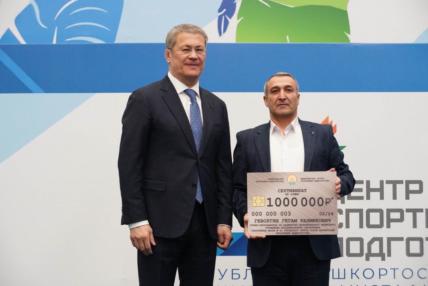 По окончании заседания Совета по вопросам развития физической культуры и спорта Глава Башкортостана Радий Хабиров поблагодарил участников за продуктивную дискуссию, а также вручил государственные награды республики и сертификаты на единовременные выплаты спортивным педагогам по программе «Сельский тренер».