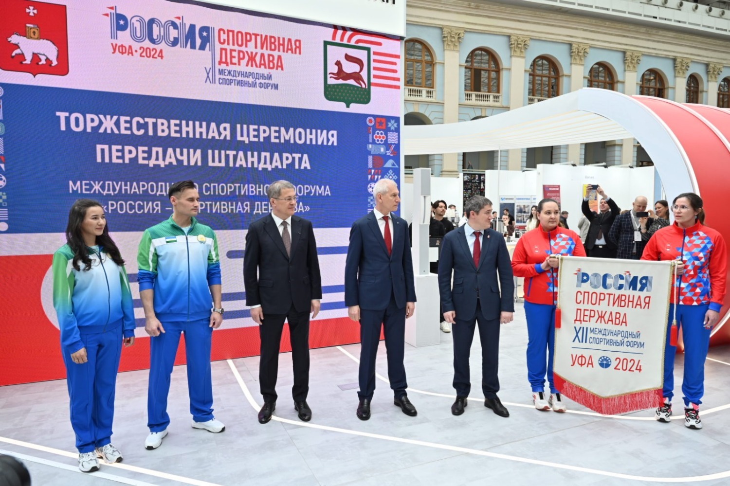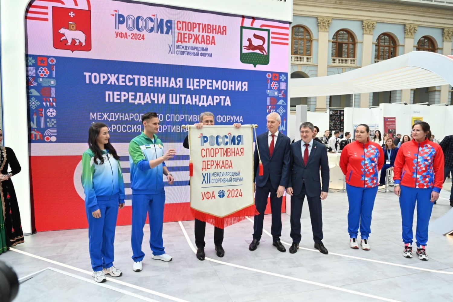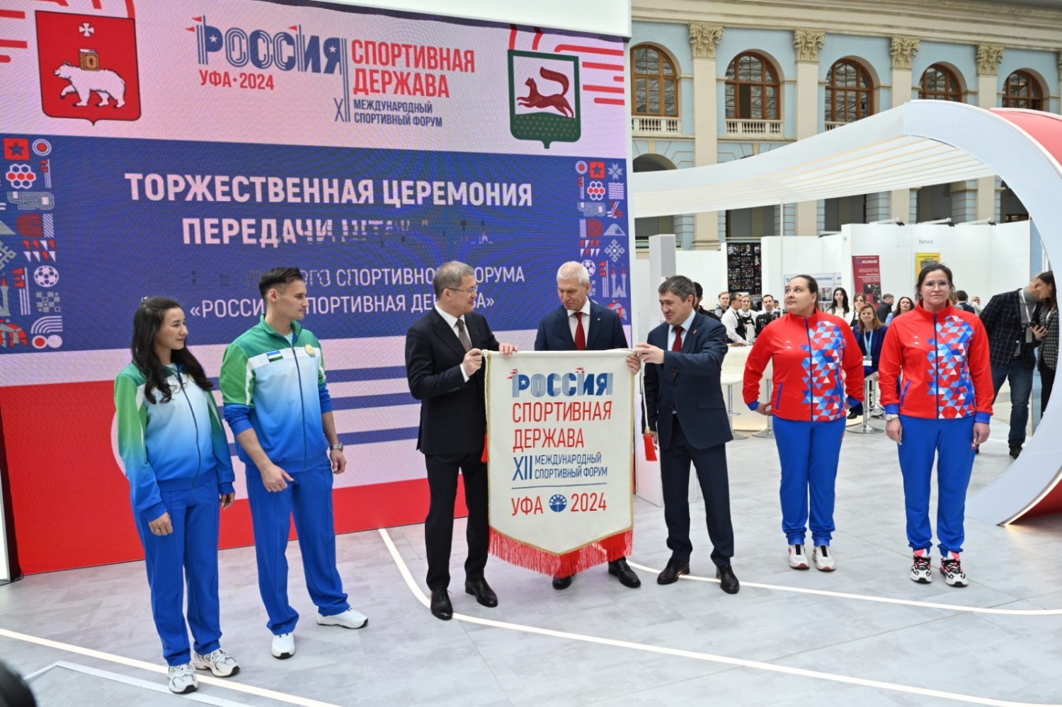 12 апреля в Москве в рамках международного конгрессно-выставочного мероприятия «Мы вместе. Спорт» состоялась церемония передачи штандарта международного спортивного форума «Россия – спортивная держава» Республике Башкортостан от Пермского края.