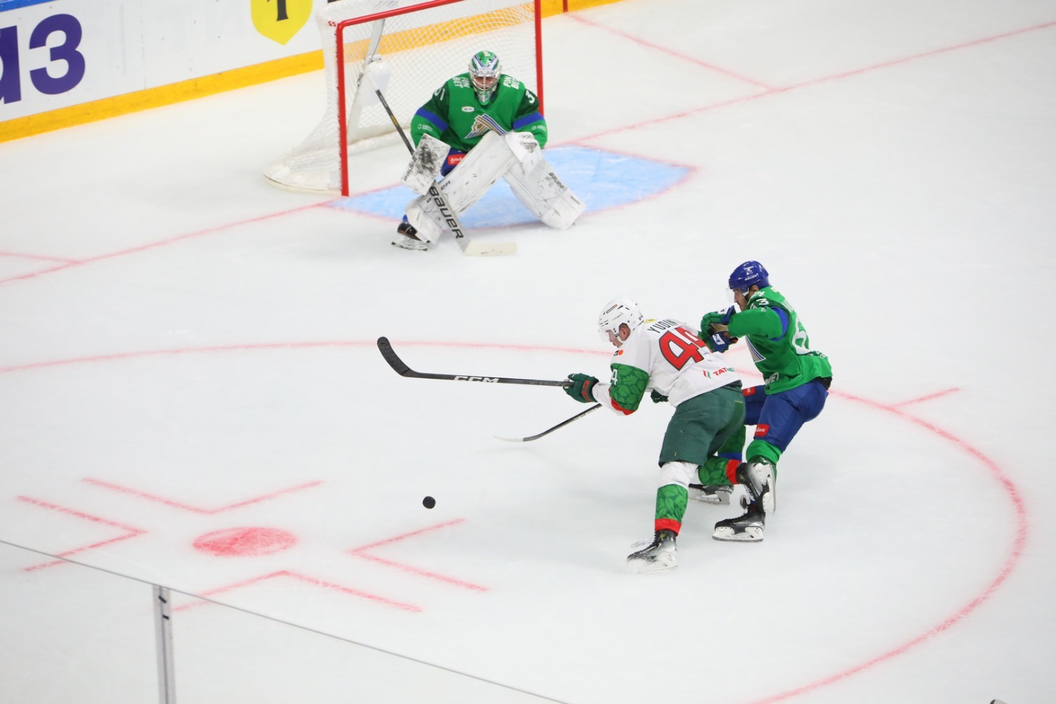 На пятой минуте «Салават» имел возможность увеличить преимущество, но шайба, брошенная Ярославом Цулыгиным, попала в штангу ворот Тимура Билялова. Через минуту создал опасность в створе ворот гостей и Артём Пименов, но ему не удалось переиграть казанского голкипера.
