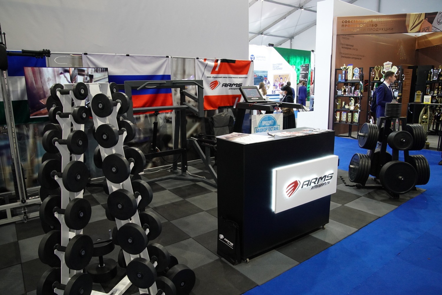 18 октября в Уфе Глава Башкортостана Радий Хабиров посетил отраслевую выставку «Современный спорт. Инновации и перспективы», которая проходит в рамках XII Международного форума «Россия – спортивная держава». Ее задача – способствовать коммуникации между федеральными и региональными властями, общественными организациями и деловым сообществом, продвигать продукцию отечественных производителей и пропагандировать физическую культуру и спорт. Около сотни стендов ведущих спортивных регионов и компаний страны представлены на площади 5000 кв. метров.