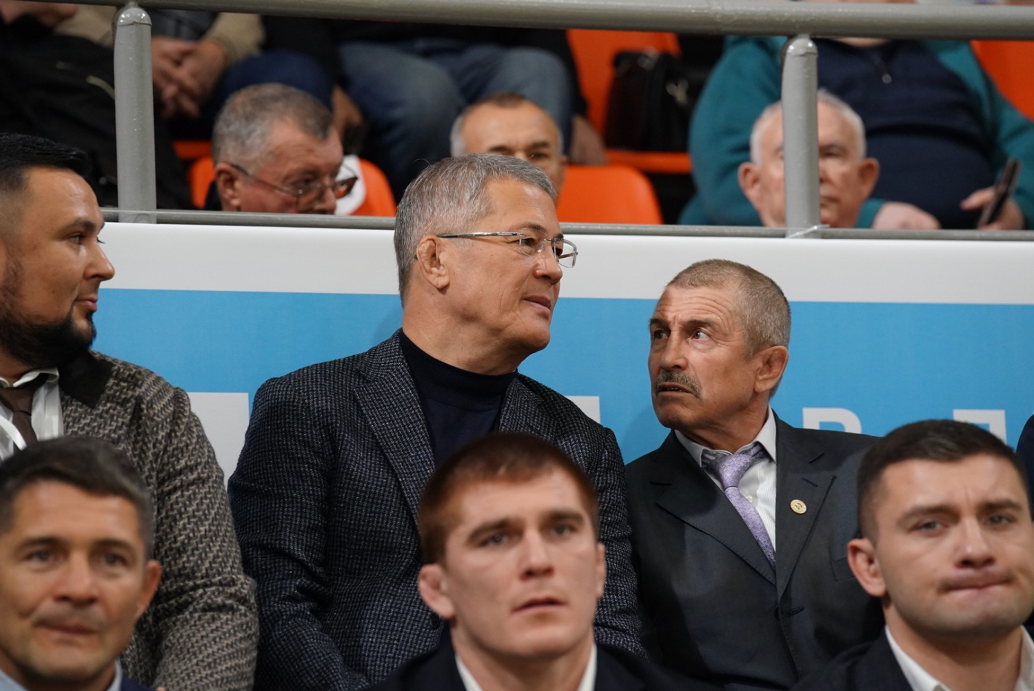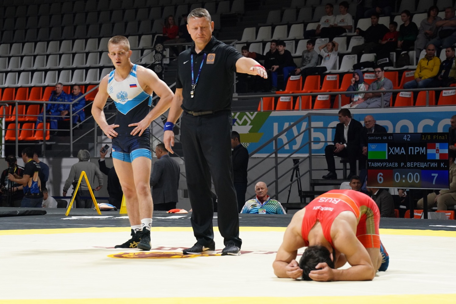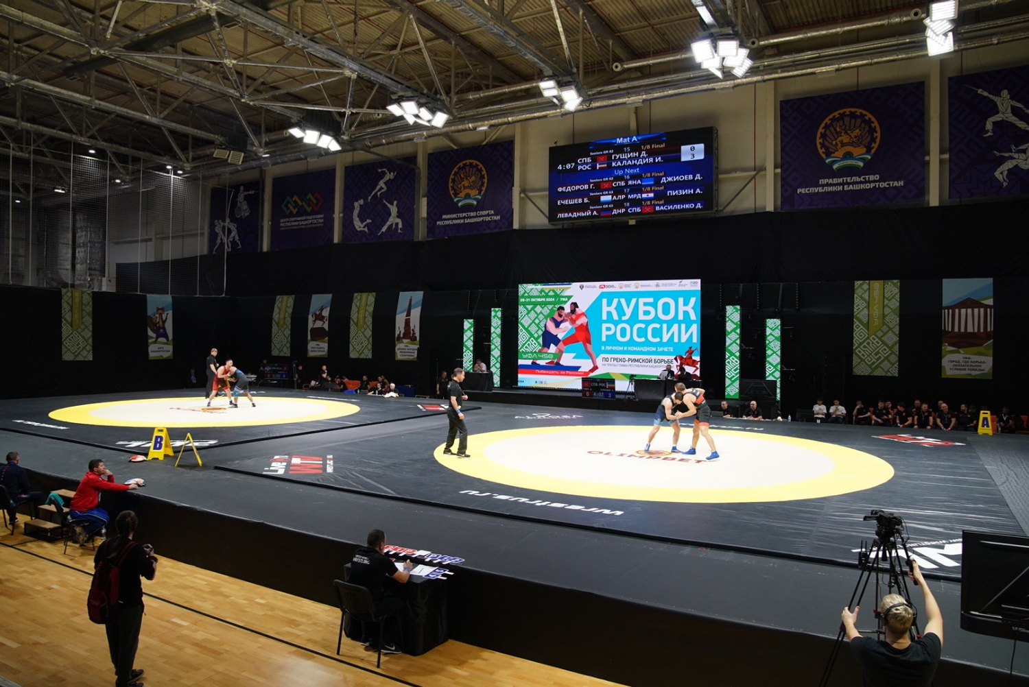 Руководитель региона вместе с олимпийскими чемпионами по борьбе и со знаменитыми тренерами понаблюдал за поединками борцов.