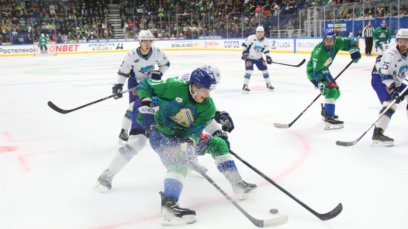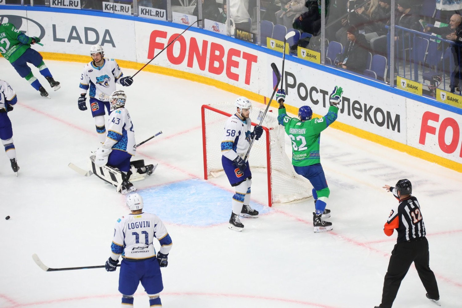 Уфимский «Салават Юлаев» в матче регулярного чемпионата КХЛ обыграл «Барыс» со счётом 6:0.