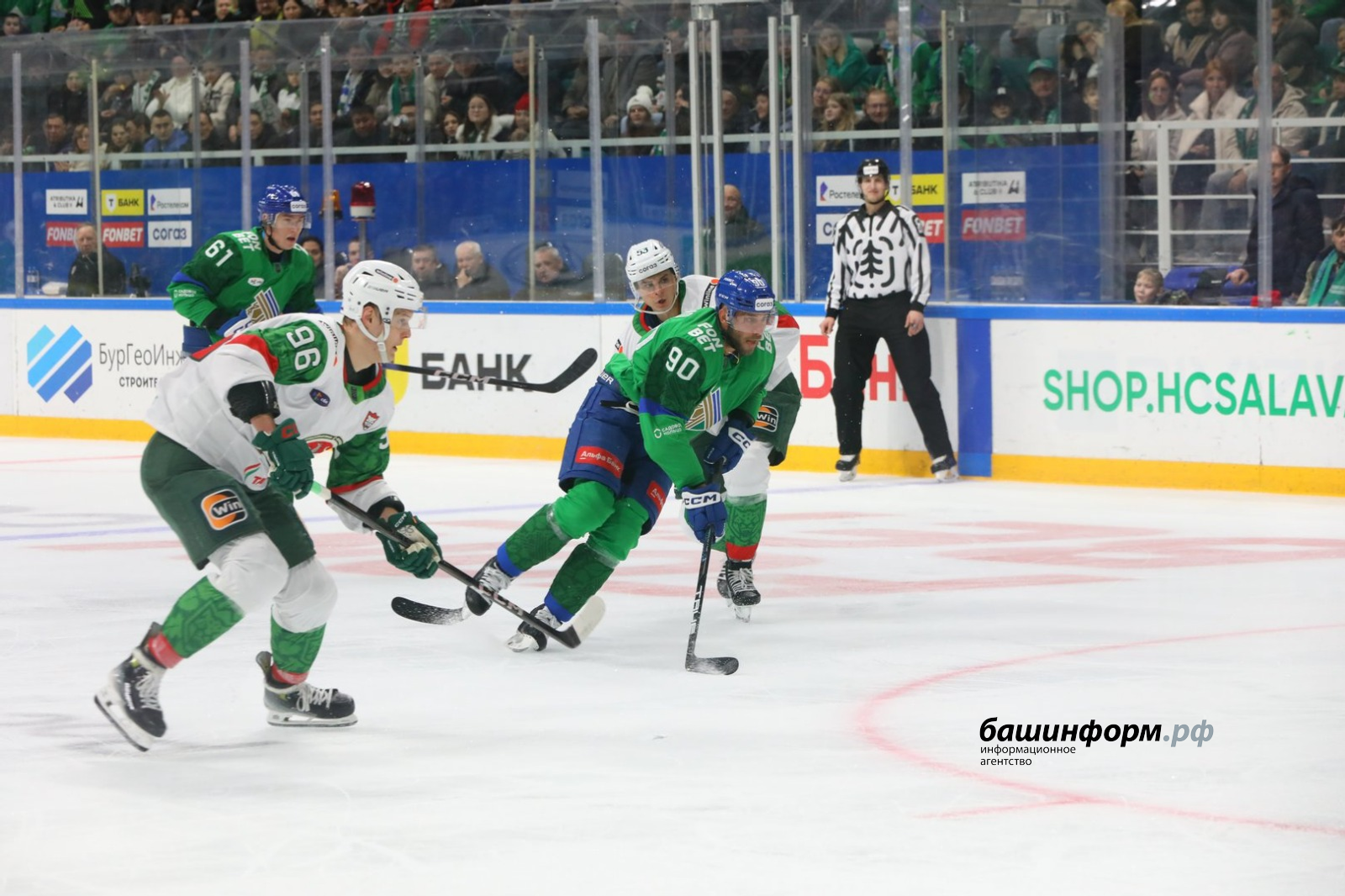 С первых минут «Салават» уверенно атаковал и владел инициативой. Но до конца отрезка счет оставался нулевым. Лишь на 28-й минуте шайбу забросил Артём Набиев — 1:0.