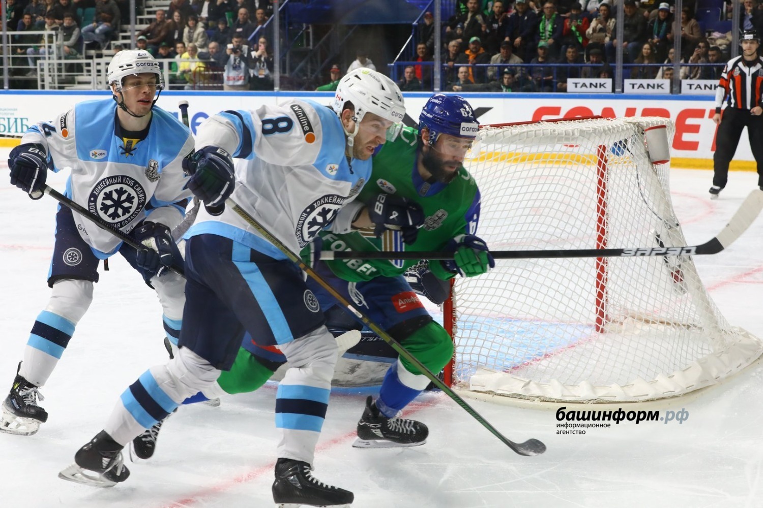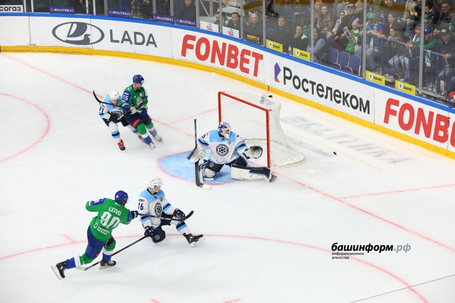 Уфимский «Салават Юлаев» обыграл новосибирцев и повел в серии плей-офф, счет — 3:2. Следующая игра состоится 6 апреля в Новосибирске.
