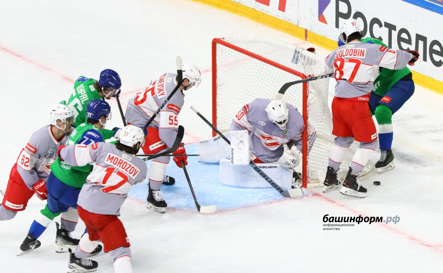 «Салават Юлаев» уверенно провёл встречу и одержал первую победу в четвертьфинале против «Спартака». Счет в серии — 1:0.