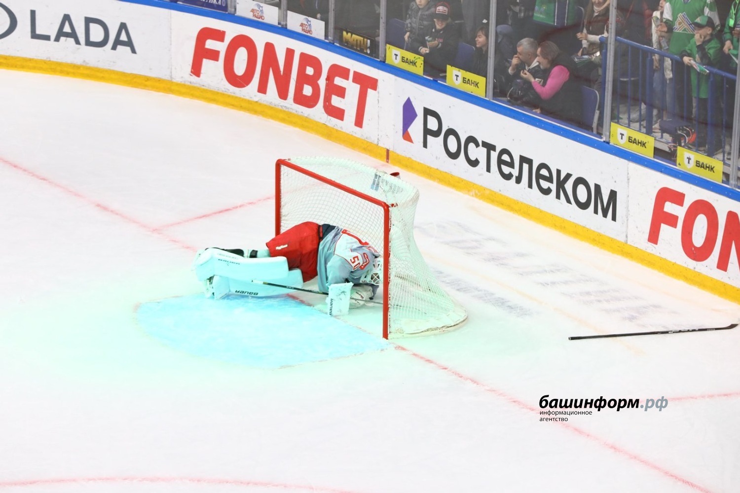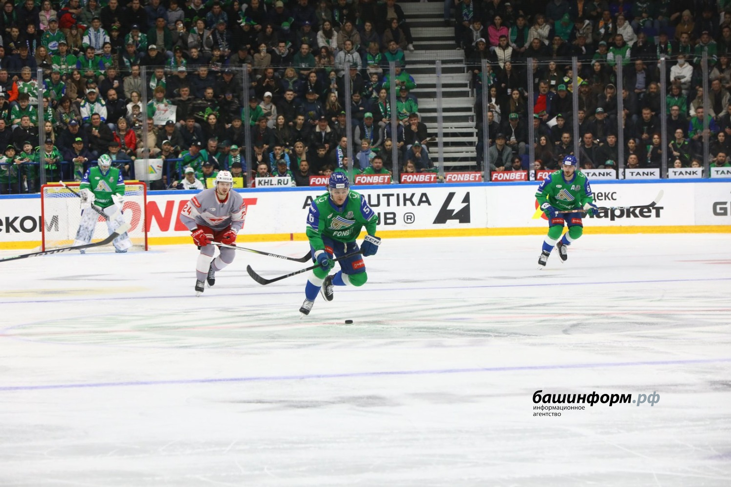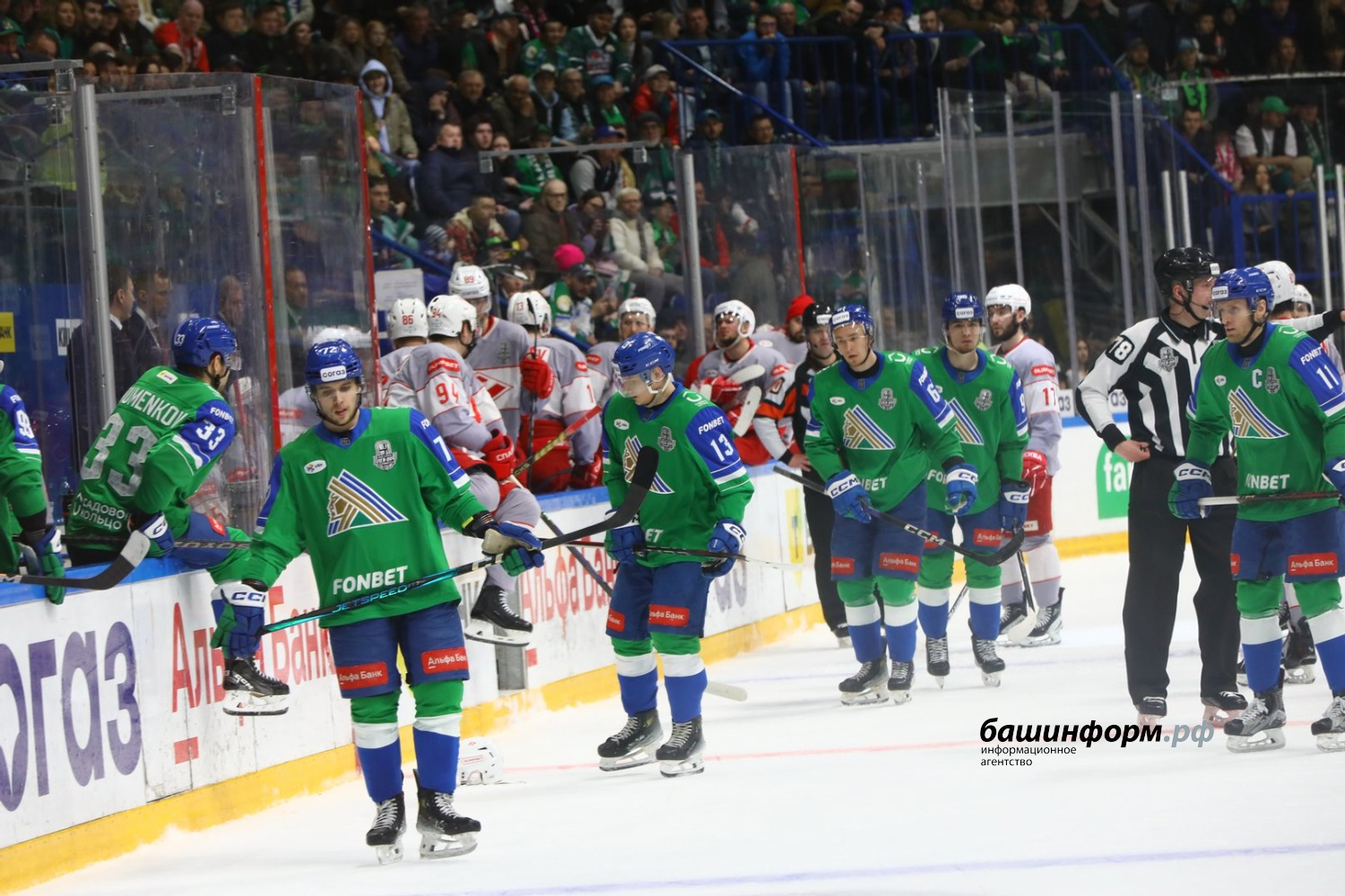 Уфимский «Салават Юлаев» в первом матче четвертьфинала Кубка Гагарина обыграл московский «Спартак» со счетом 4:1. Игра в эти минуты завершилась на «Уфа-Арене».
