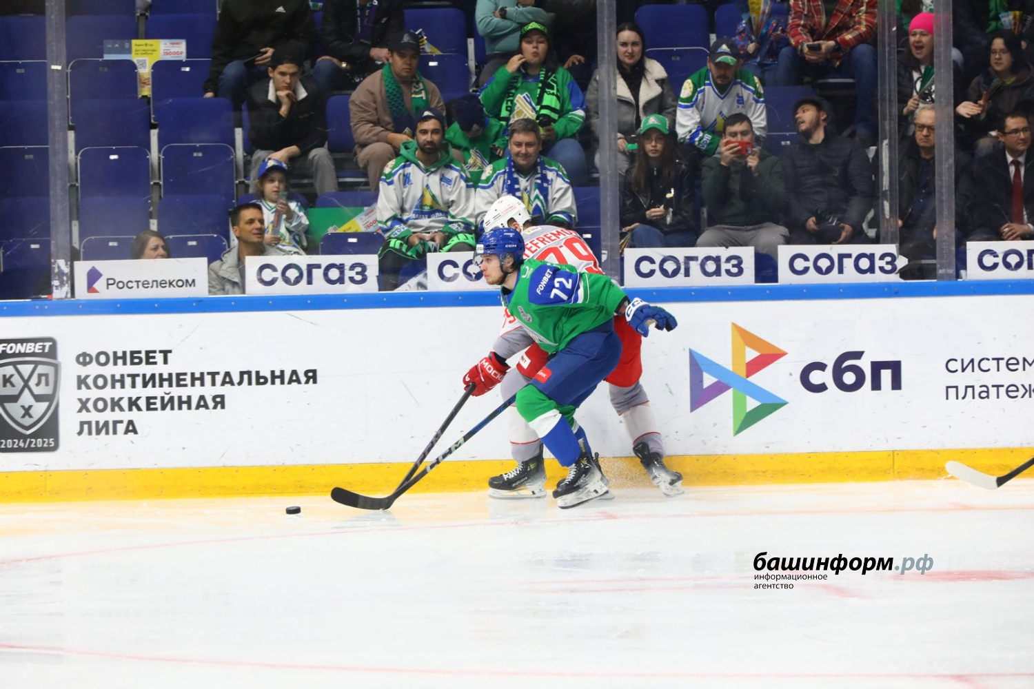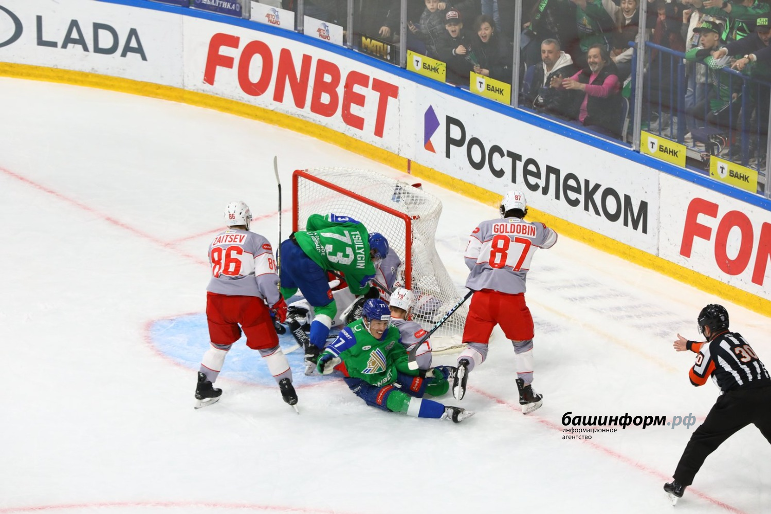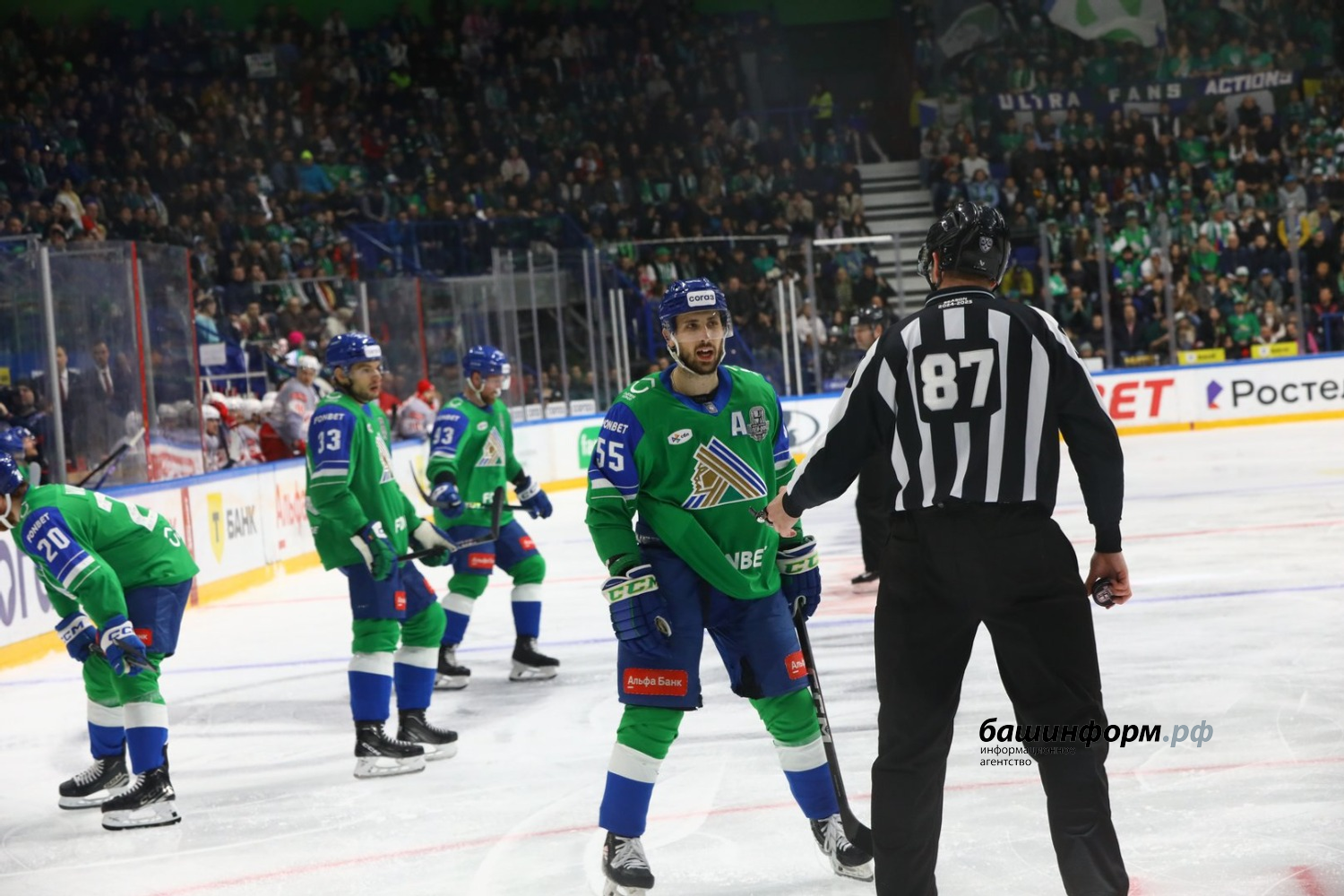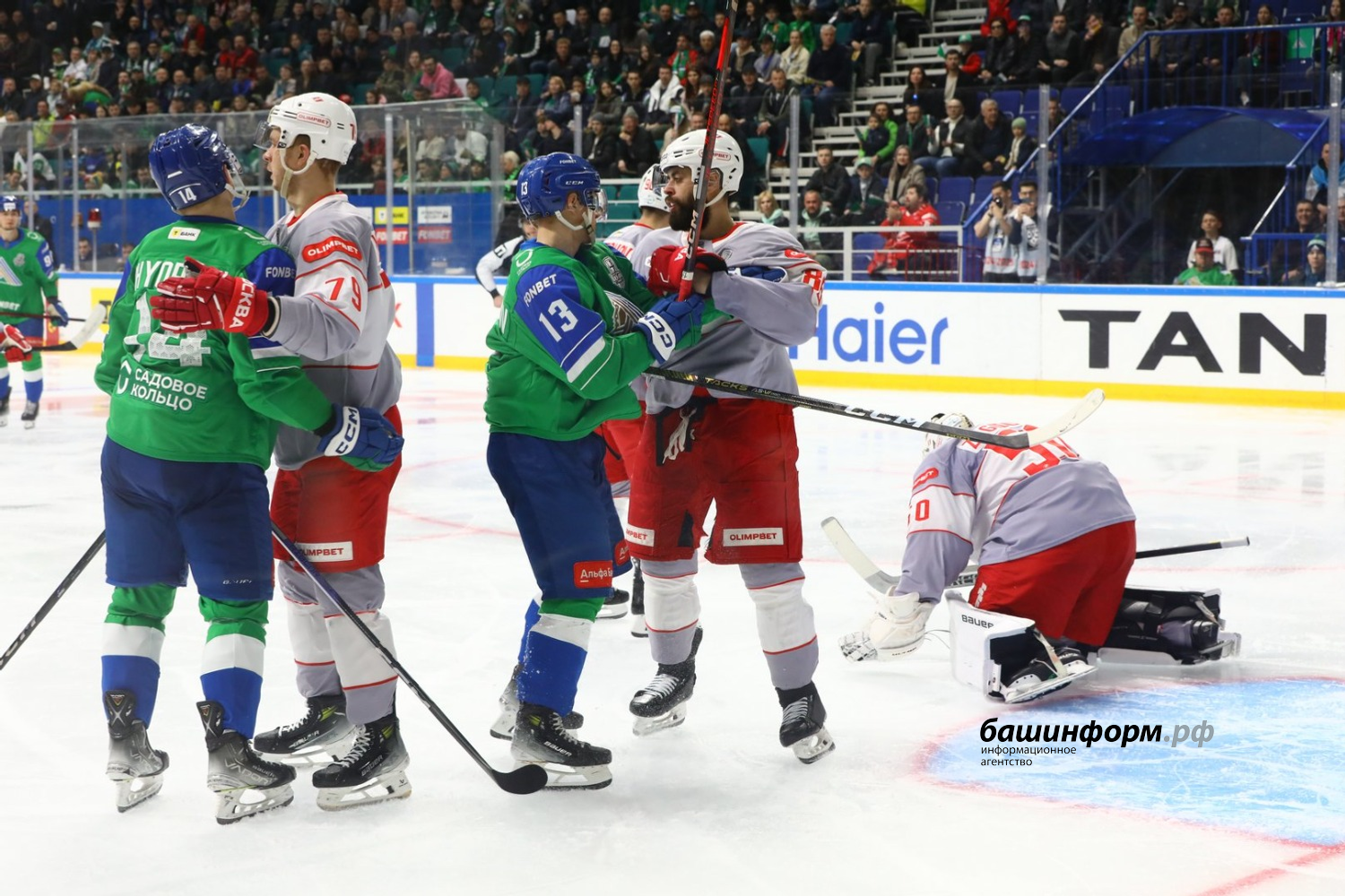 Уфимский «Салават Юлаев» в первом матче четвертьфинала Кубка Гагарина обыграл московский «Спартак» со счетом 4:1. Игра в эти минуты завершилась на «Уфа-Арене».