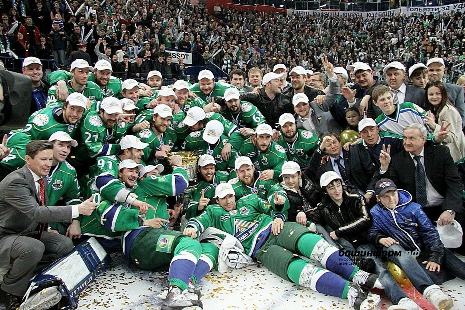 В этот день 14 лет назад уфимский «Салават Юлаев» впервые в своей истории стал обладателем Кубка Гагарина. Напомним, что это был пятый матч финальной серии против мытищинского «Атланта». Ведя со счетом 3:0, уфимский «Салават» проиграл в гостях. Но решающий матч дома уфимцы дожали. Голами отметились Андрей Таратухин, Андрей Кутейкин и Александр Свитов. «Салаватом Юлаевым» тогда руководили Вячеслав Быков и Игорь Захаркин.