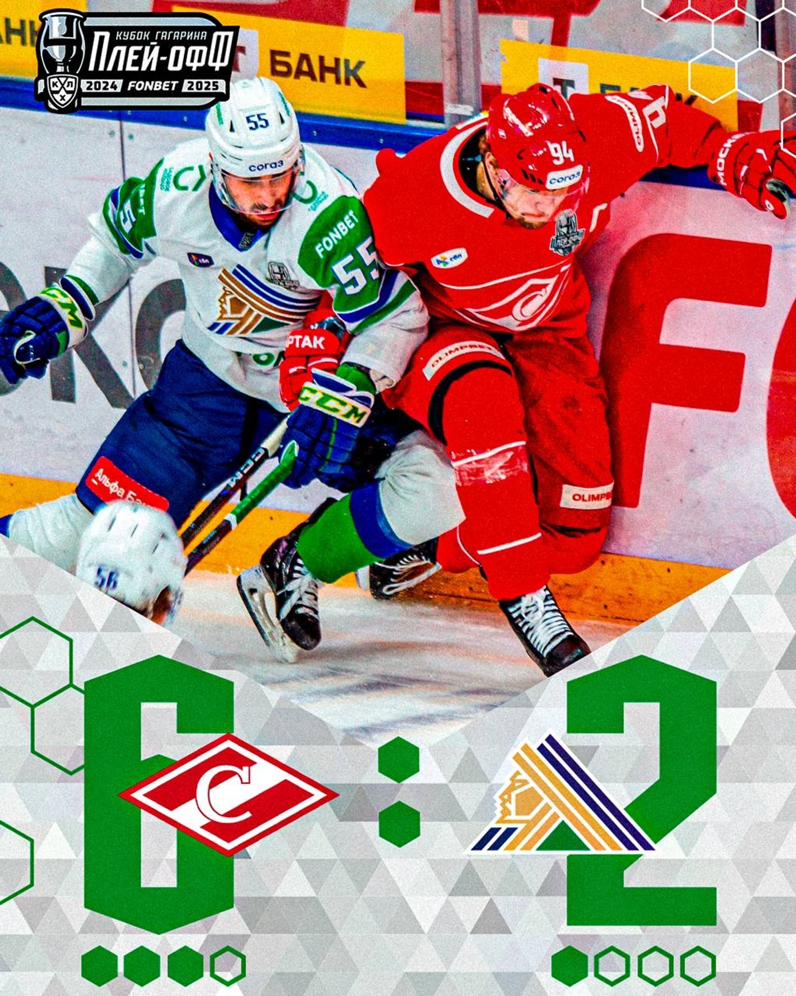 Уфимский «Салават Юлаев» уступил в четвертом матче четвертьфинала «Спартаку» со счетом 2:6.