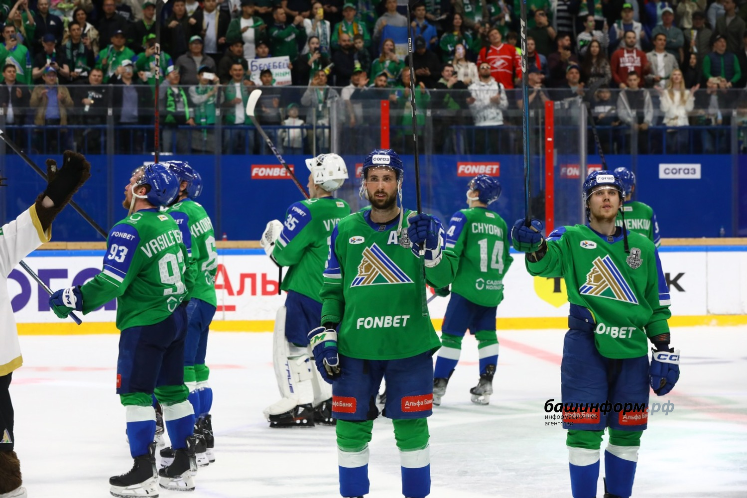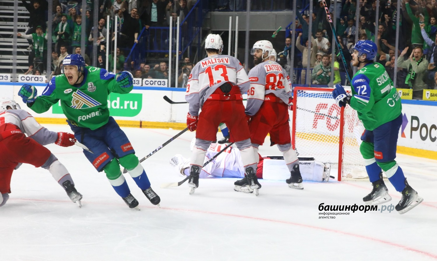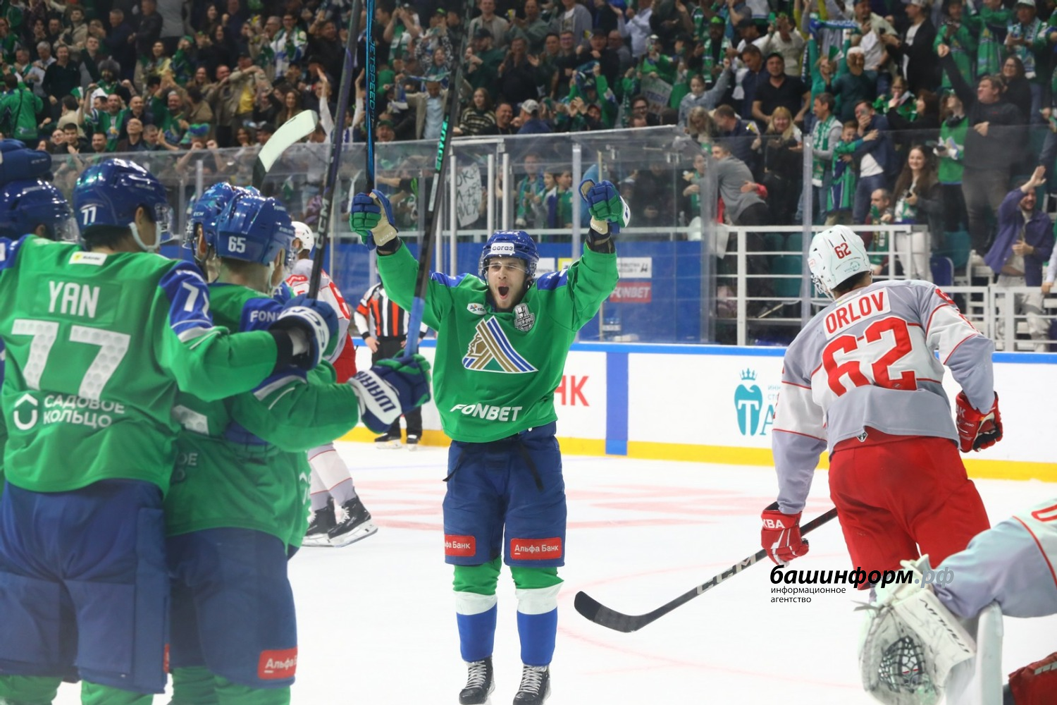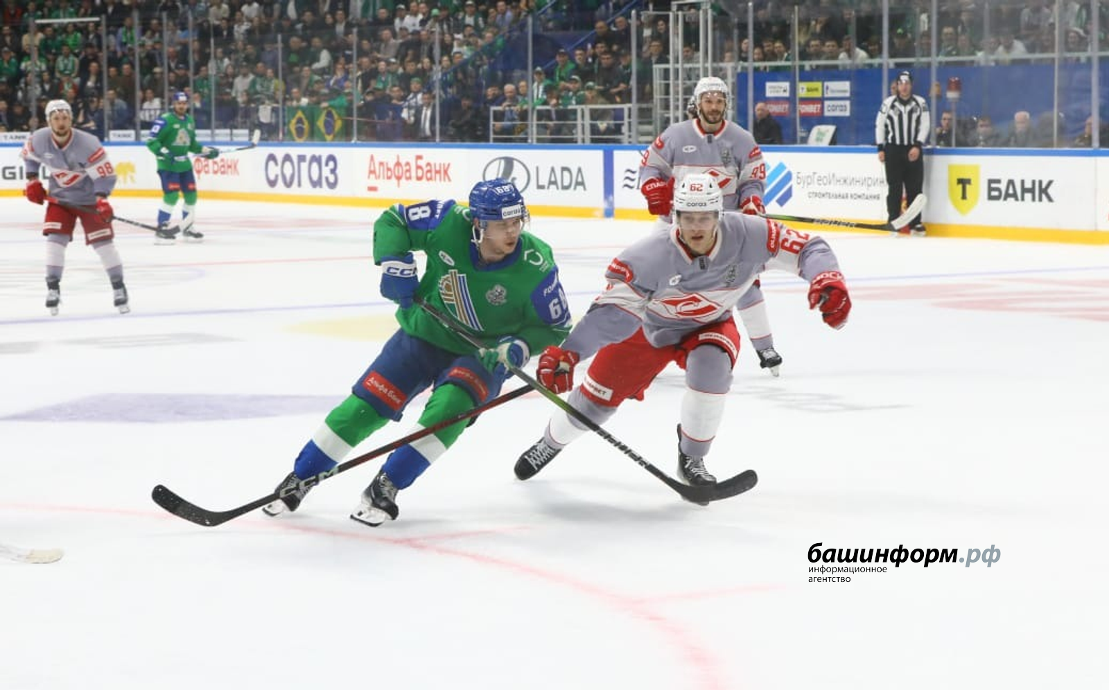 «Салават Юлаев» в Уфе победил «Спартак» и вышел в полуфинал Кубка Гагарина. Игра в эти минуты завершилась со счетом 3:2.