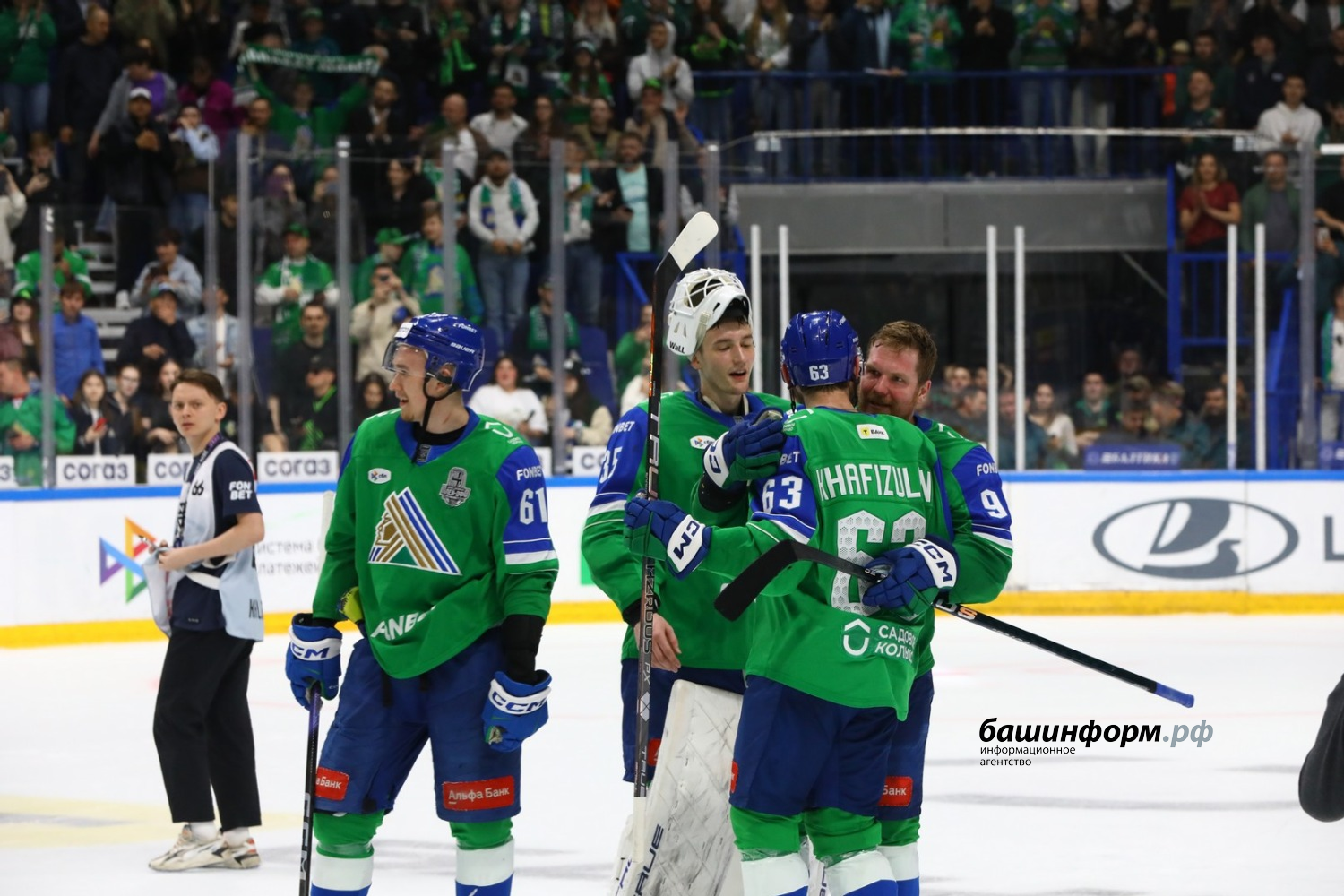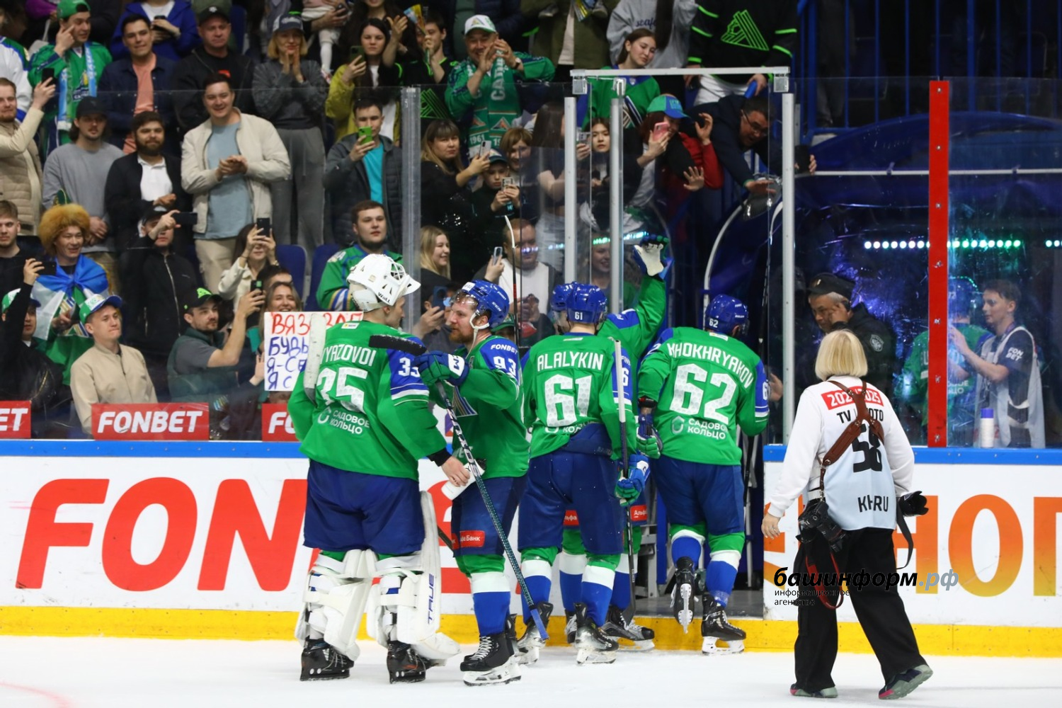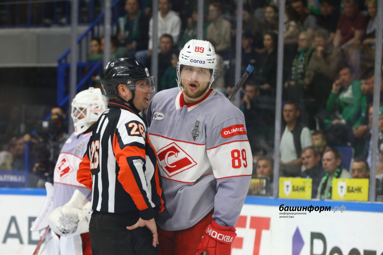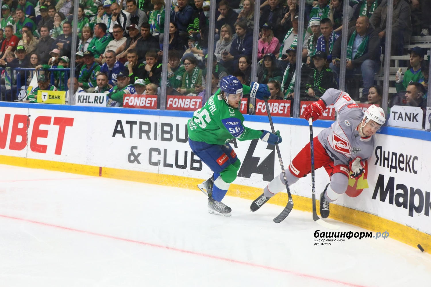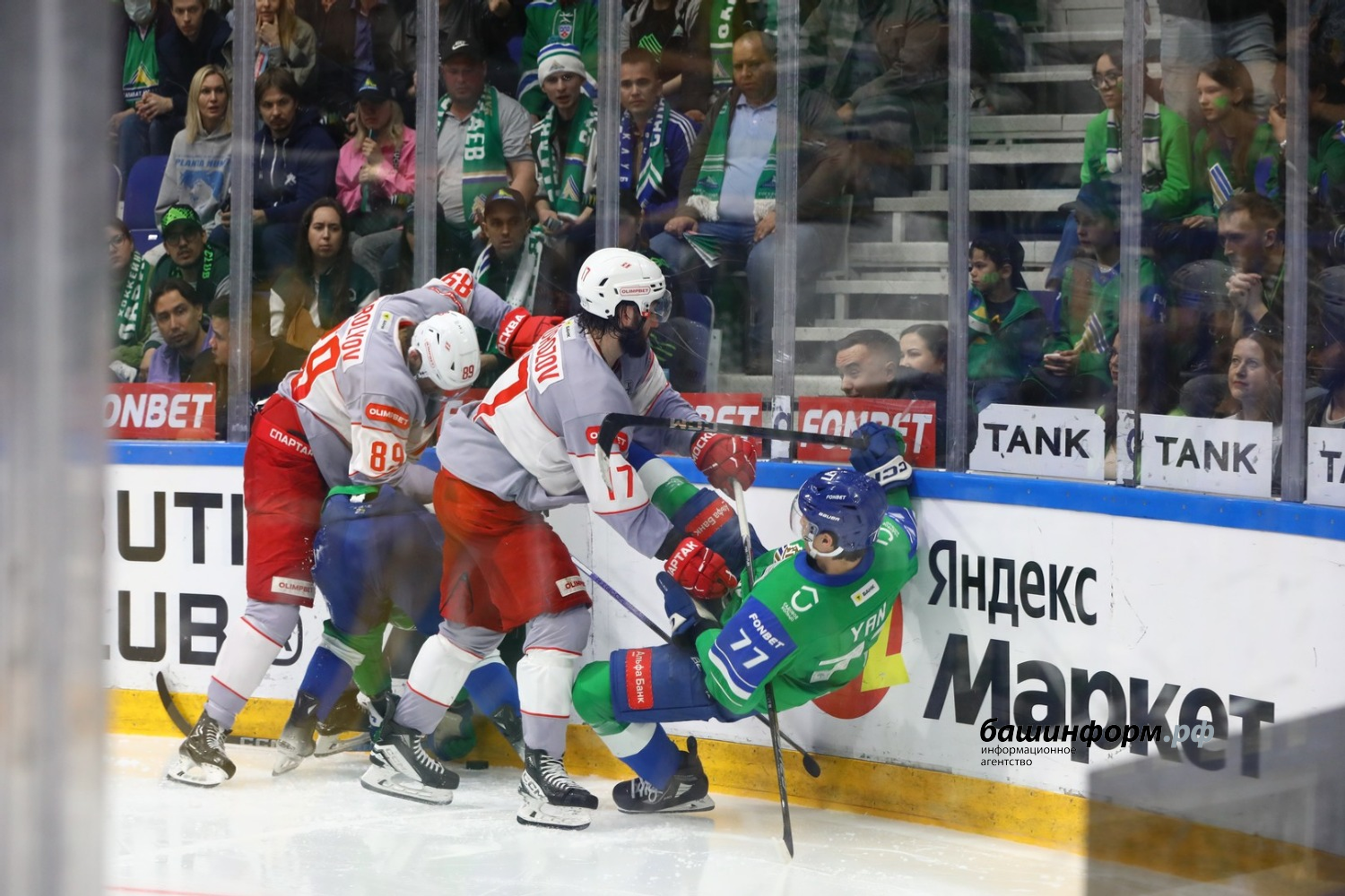 «Салават Юлаев» в Уфе победил «Спартак» и вышел в полуфинал Кубка Гагарина. Игра в эти минуты завершилась со счетом 3:2.