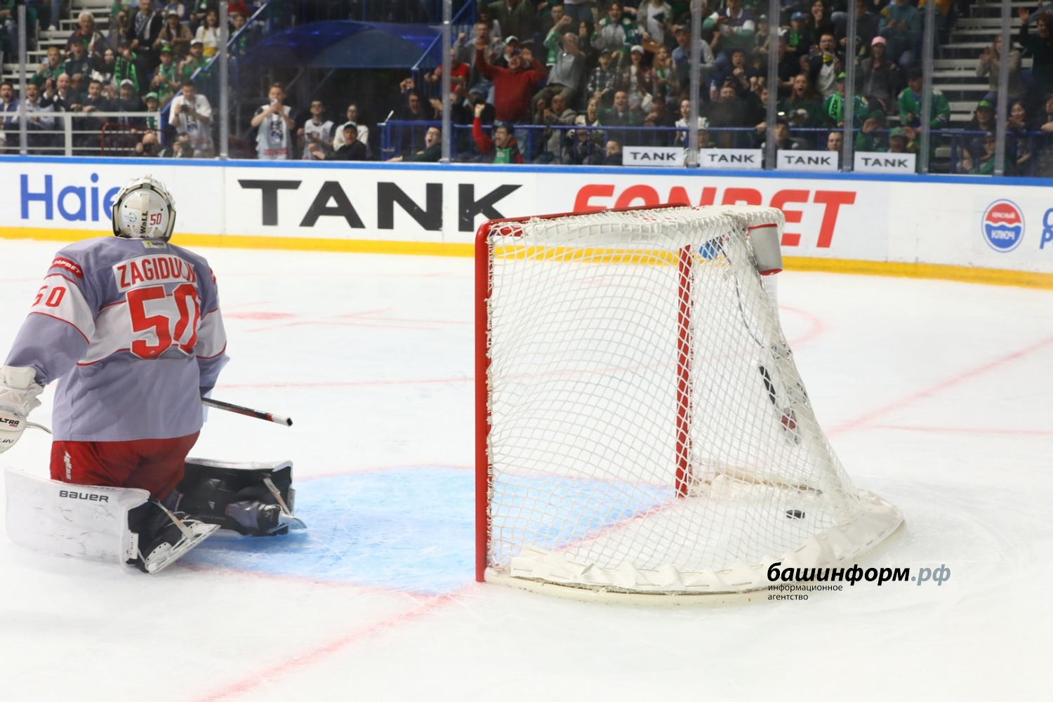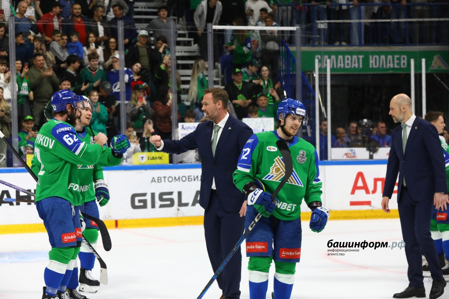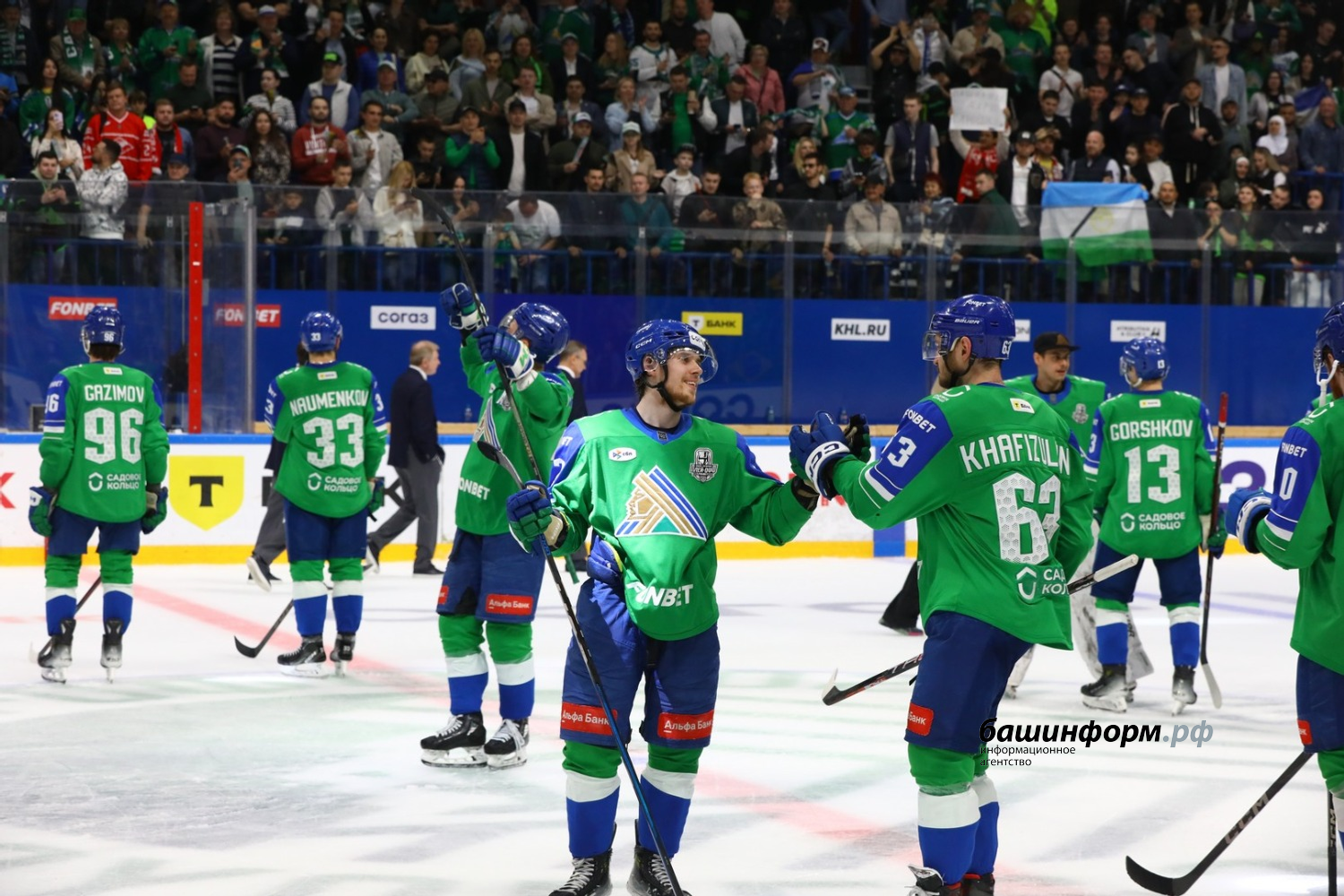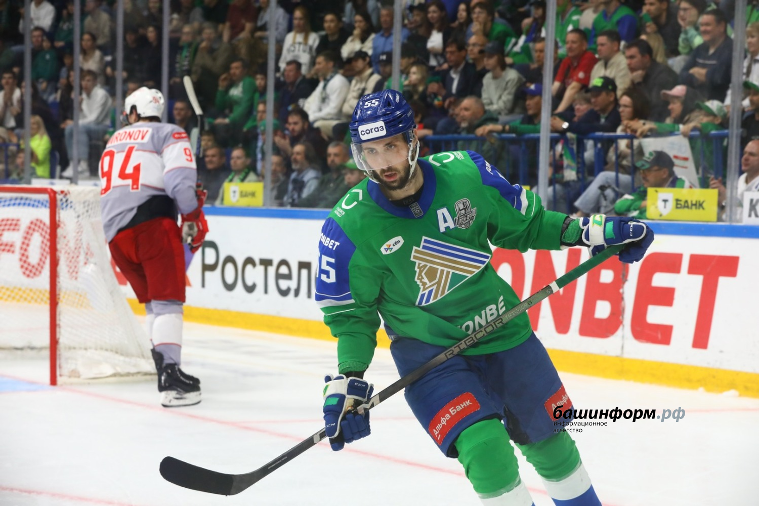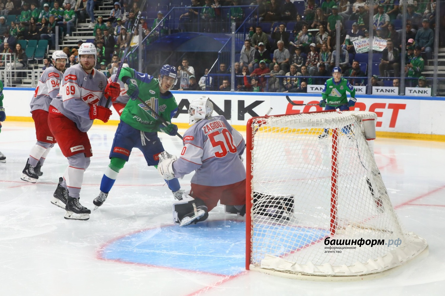 «Салават Юлаев» в Уфе победил «Спартак» и вышел в полуфинал Кубка Гагарина. Игра в эти минуты завершилась со счетом 3:2.