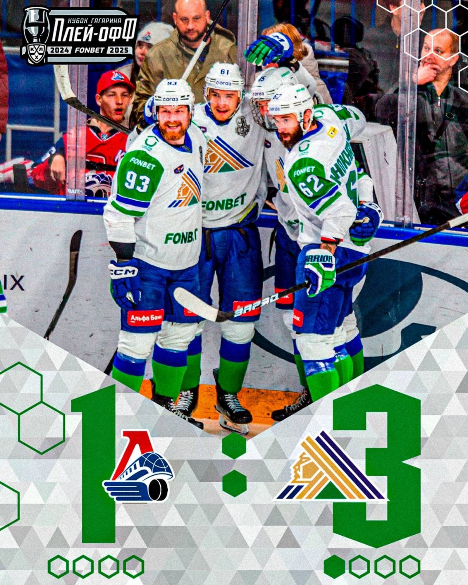 Уфимский «Салават Юлаев» в первом матче полуфинала обыграл «Локомотив» со счетом 3:1. Игра в эти минуты завершилась в Ярославле.