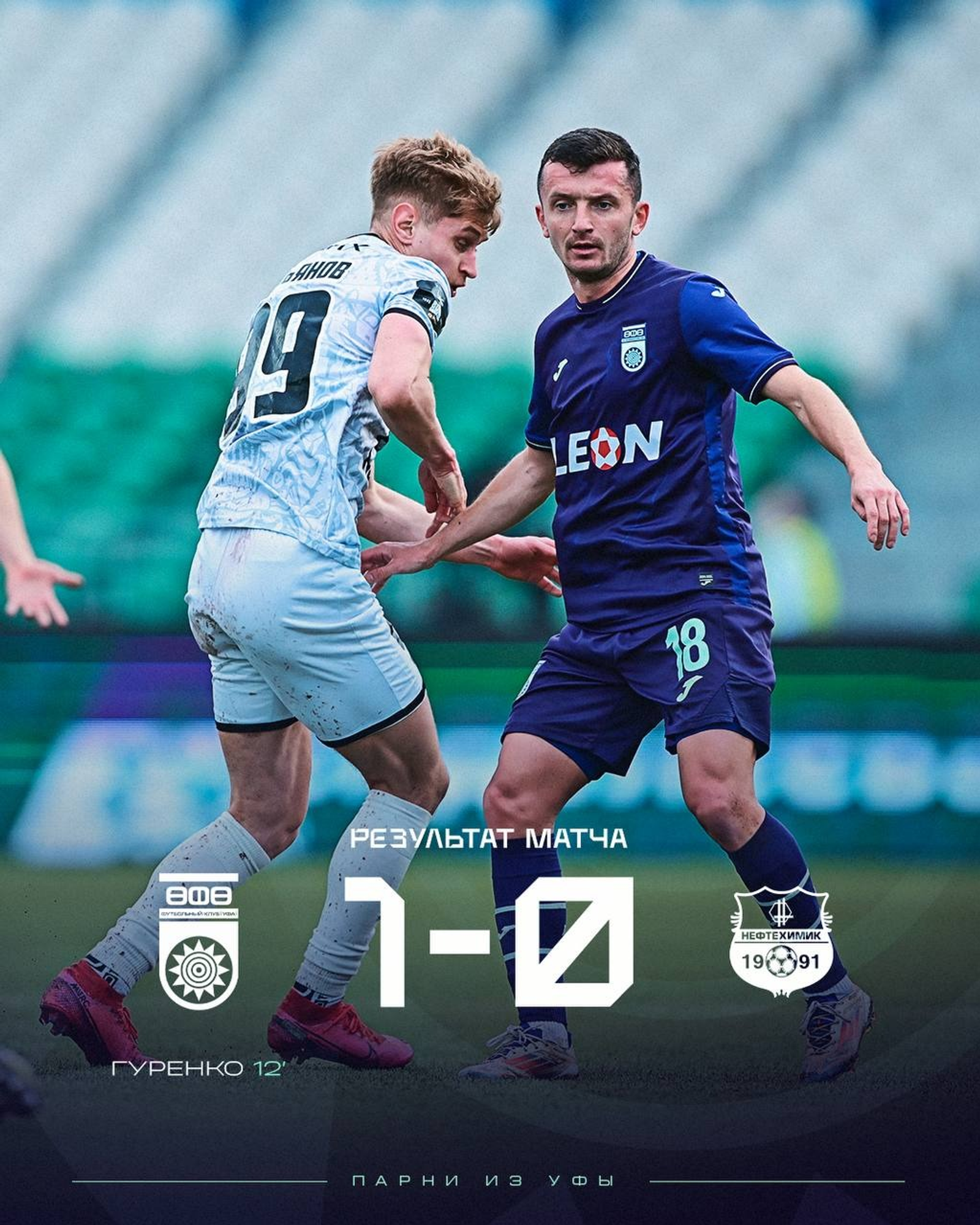 Футбольный клуб «Уфа» продолжает радовать болельщиков успехами. Сегодня на стадионе «Нефтяник» прошел матч 31-го тура Мелбет-Первой лиги. Уфимцы встретились с нижнекамским «Нефтехимиком». Игра завершилась со счетом 1:0 в пользу нашей команды. Единственный гол забил Артем Гуренко.