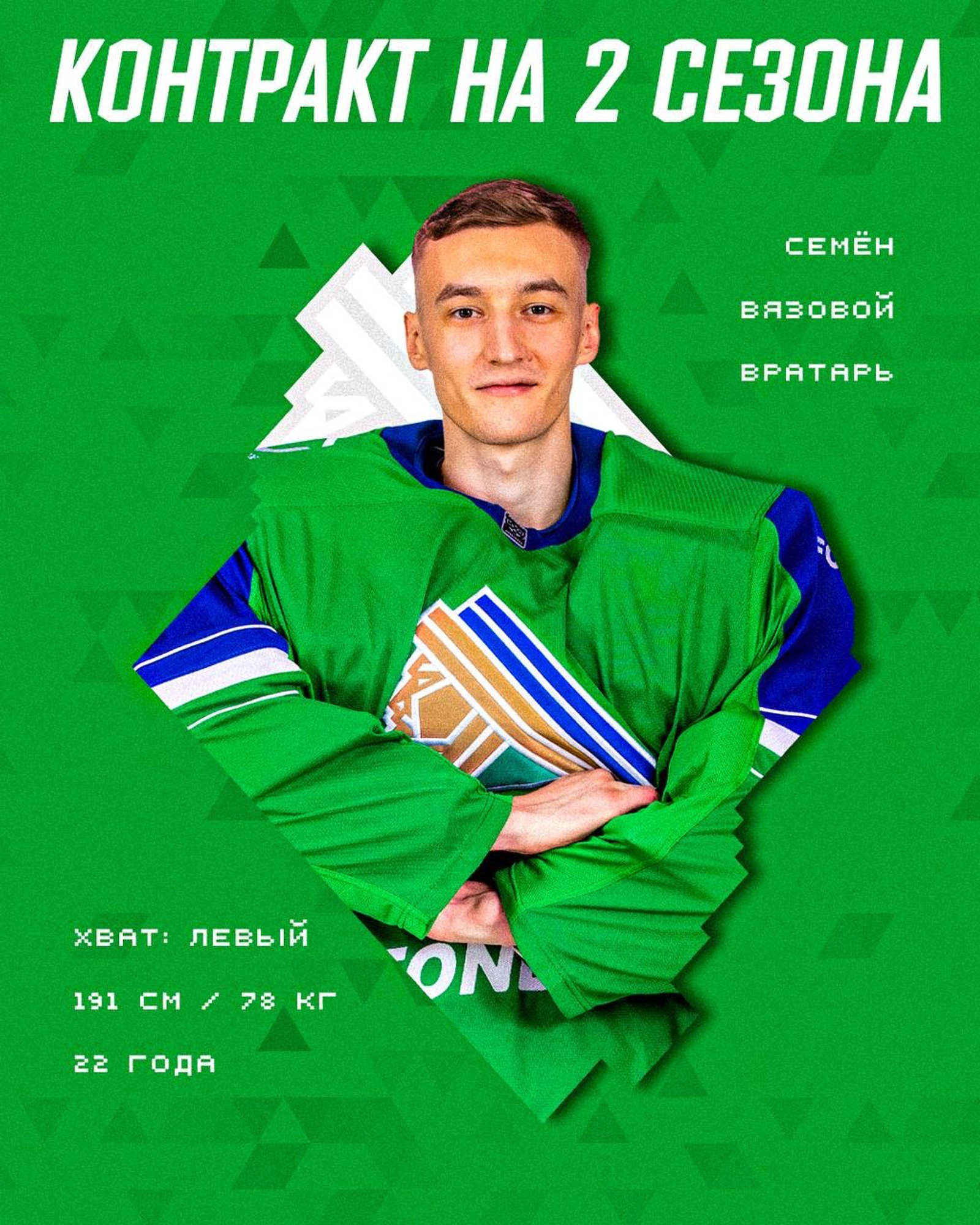 ХК «Салават Юлаев» продлил контракт с вратарем Семёном Вязовым. Как сообщили в пресс-службе уфимской команды, соглашение рассчитано на два года.