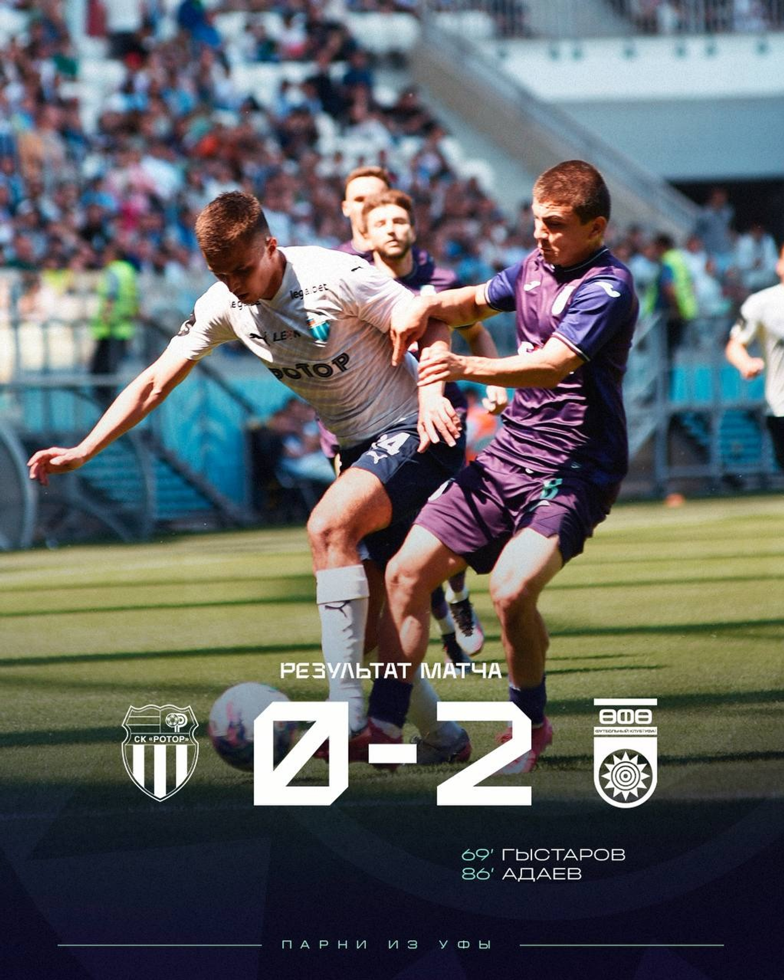 ФК «Уфа» в гостевом матче обыграл волгоградский «Ротор». Матч завершился со счетом 2:0, сообщается в телеграм-канале уфимского клуба.
