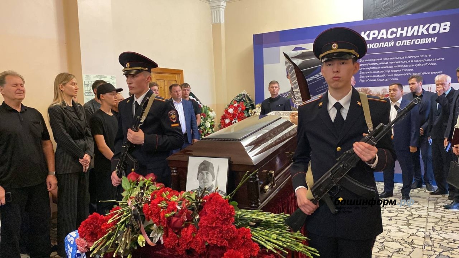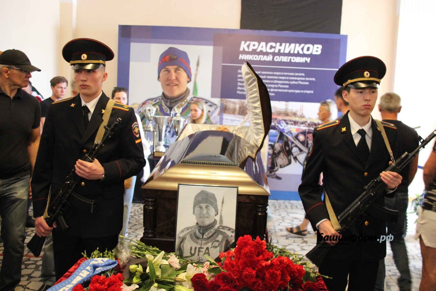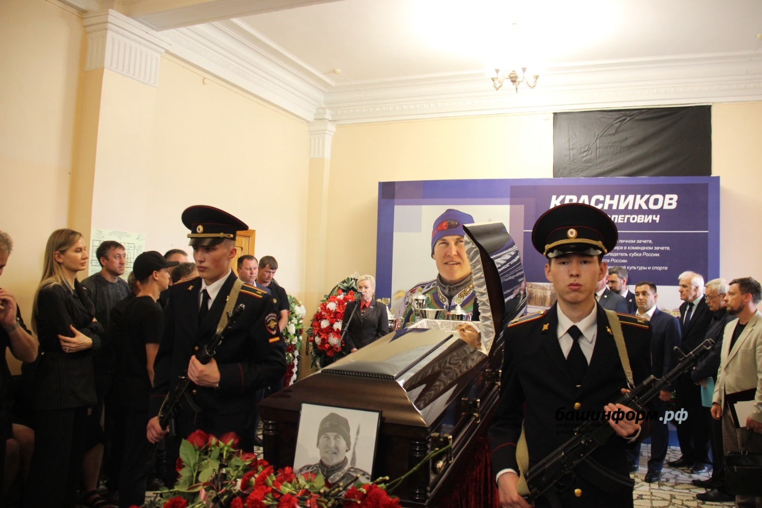 Гроб вынесли из спортшколы под рев мотоциклов. Воспитанники Центра технических видов спорта имени Габдрахмана Кадырова проводили траурный кортеж. Николай Красников будет похоронен на малой родине, в Шадринске Курганской области. Прощание пройдет 19 июня с 9:00 до 12:00.