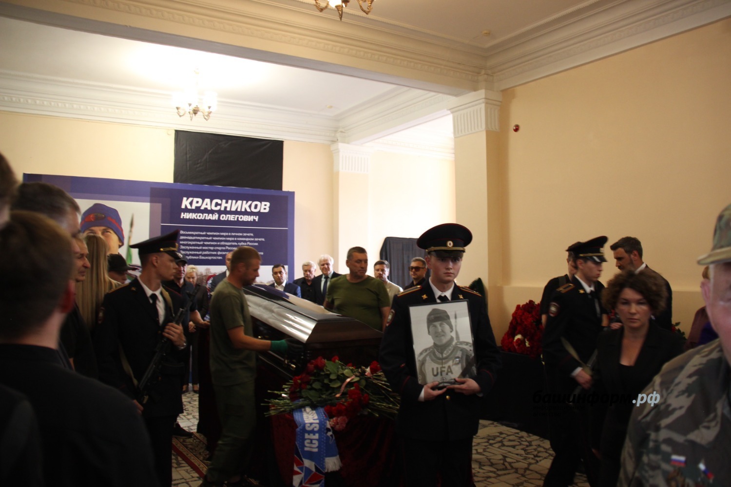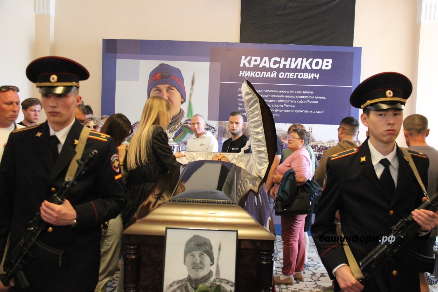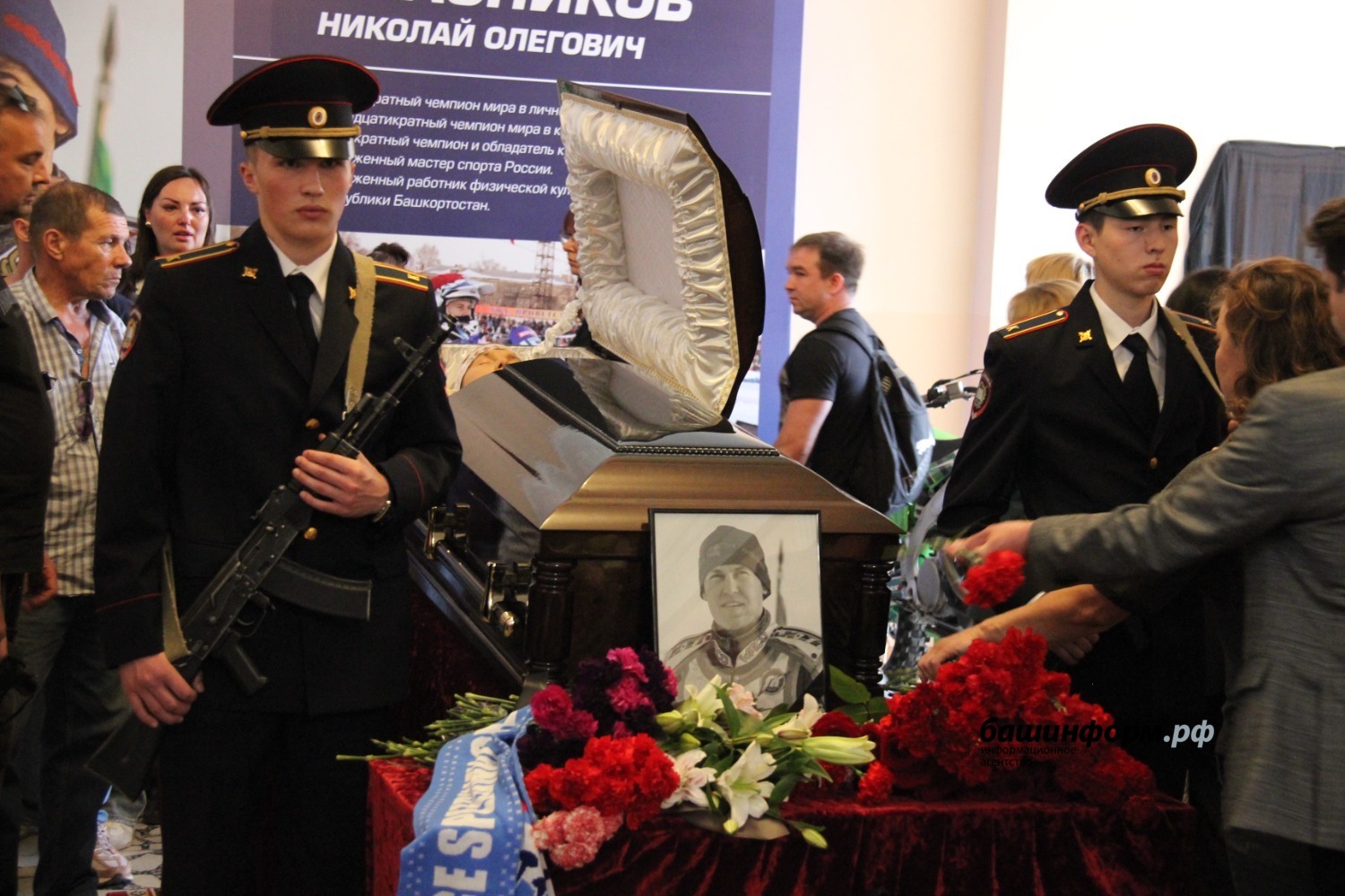 Гроб вынесли из спортшколы под рев мотоциклов. Воспитанники Центра технических видов спорта имени Габдрахмана Кадырова проводили траурный кортеж. Николай Красников будет похоронен на малой родине, в Шадринске Курганской области. Прощание пройдет 19 июня с 9:00 до 12:00.