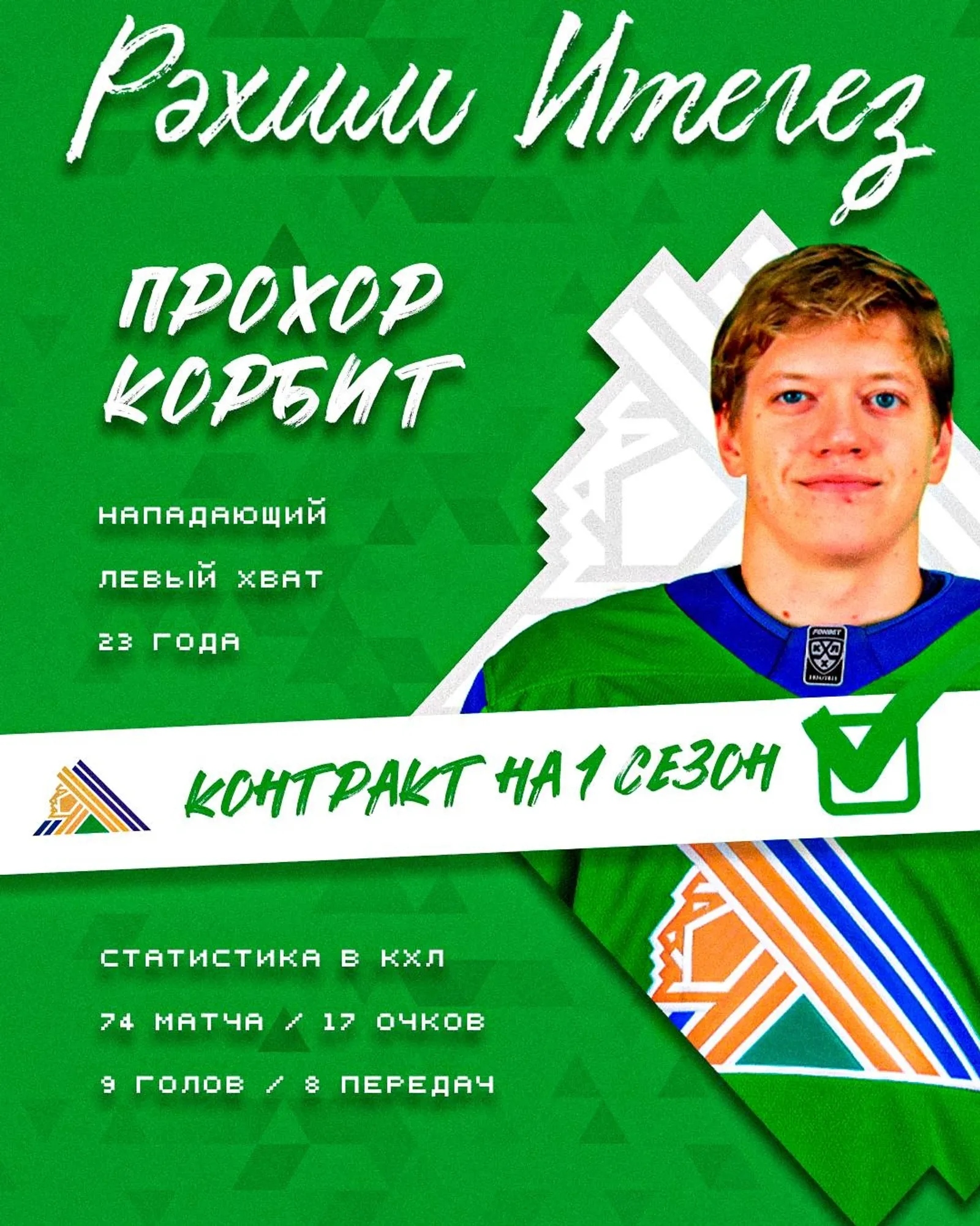 Уфимский «Салават Юлаев» заключил контракт с Прохором Корбитом. Нападающий перешел в уфимский клуб в результате обмена со «Спартаком». Как сообщили в пресс-службе «юлаевцев», контракт с Прохором Корбитом рассчитан на 1 год.