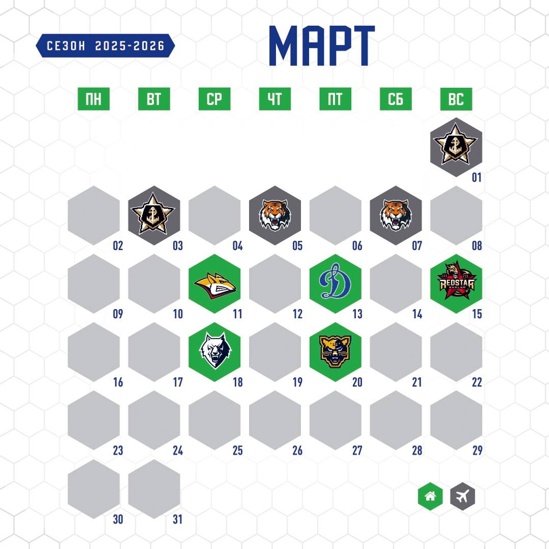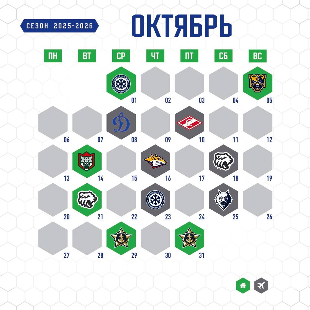 В сентябре «юлаевцы» проведут только два домашних матча: 12 сентября с екатеринбургским «Автомобилистом» и 27 сентября с омским «Авангардом». В последнем матче регулярного чемпионата 20 марта уфимский клуб встретится с ХК «Сочи».