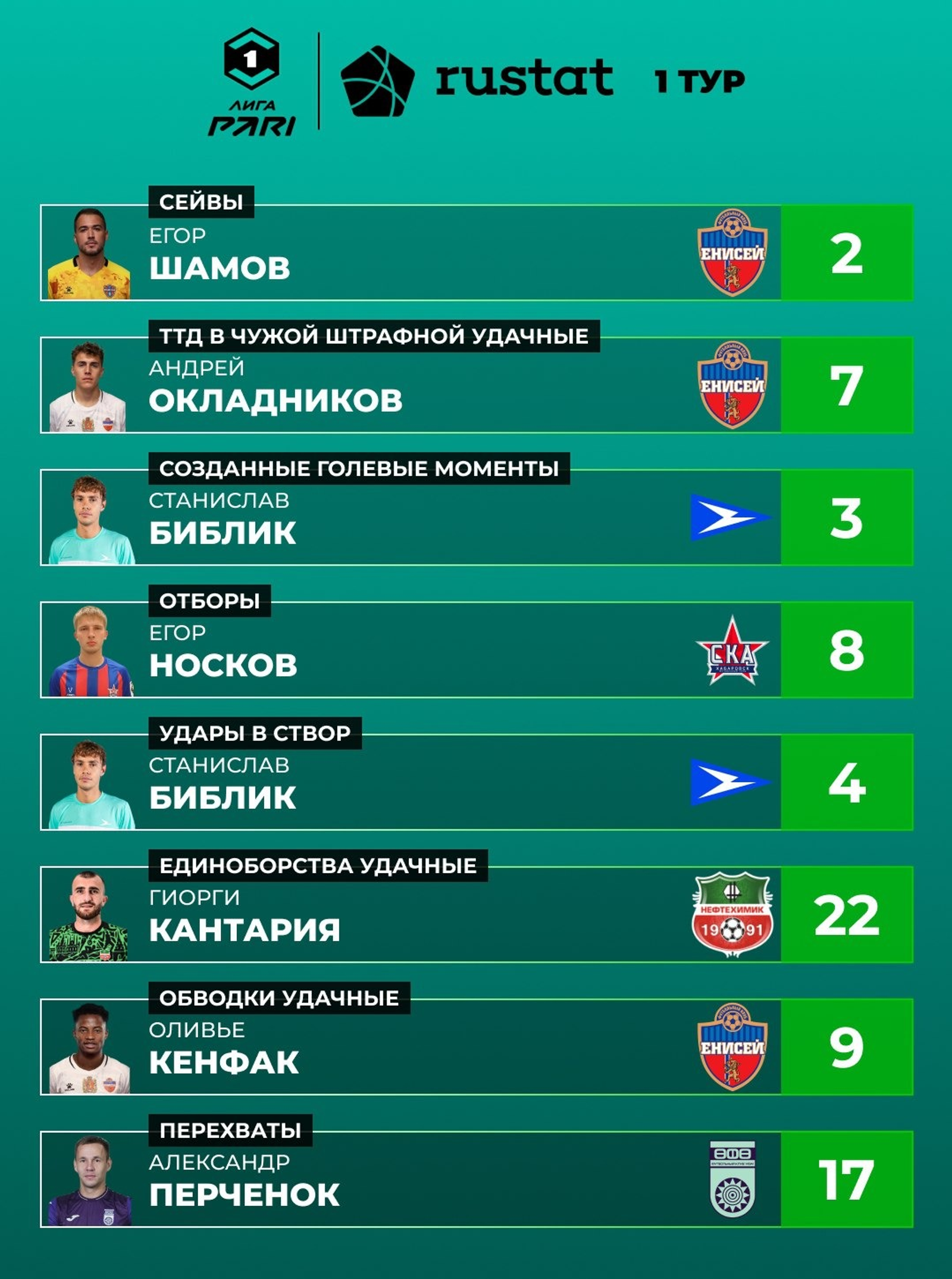 Футболист ФК «Уфа» Александр Перчёнок вошел в топ лучших игроков первого тура. Защитник уфимской команды совершил 17 перехватов в матче со «СКА-Хабаровском». Это стало лучшим показателем тура.