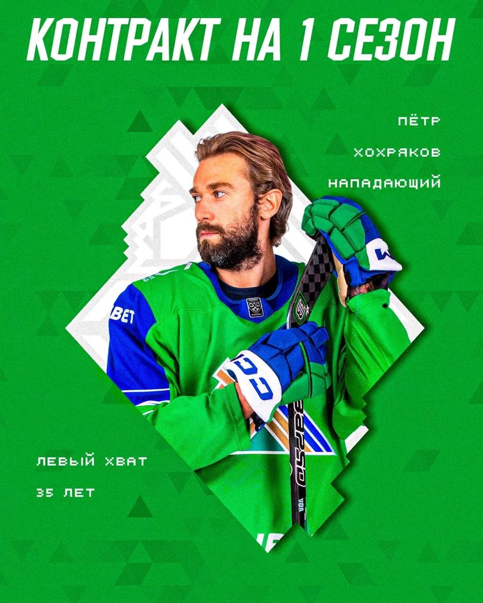 Петр Хохряков выступал за «Салават Юлаев» с 2018 по 2022 год, став вместе с командой бронзовым призёром КХЛ. После этого Хохряков защищал цвета челябинского «Трактора» (2022/23) и хабаровского «Амура» (2023/24). Нападающий вернулся в уфимскую команду летом 2024 года.