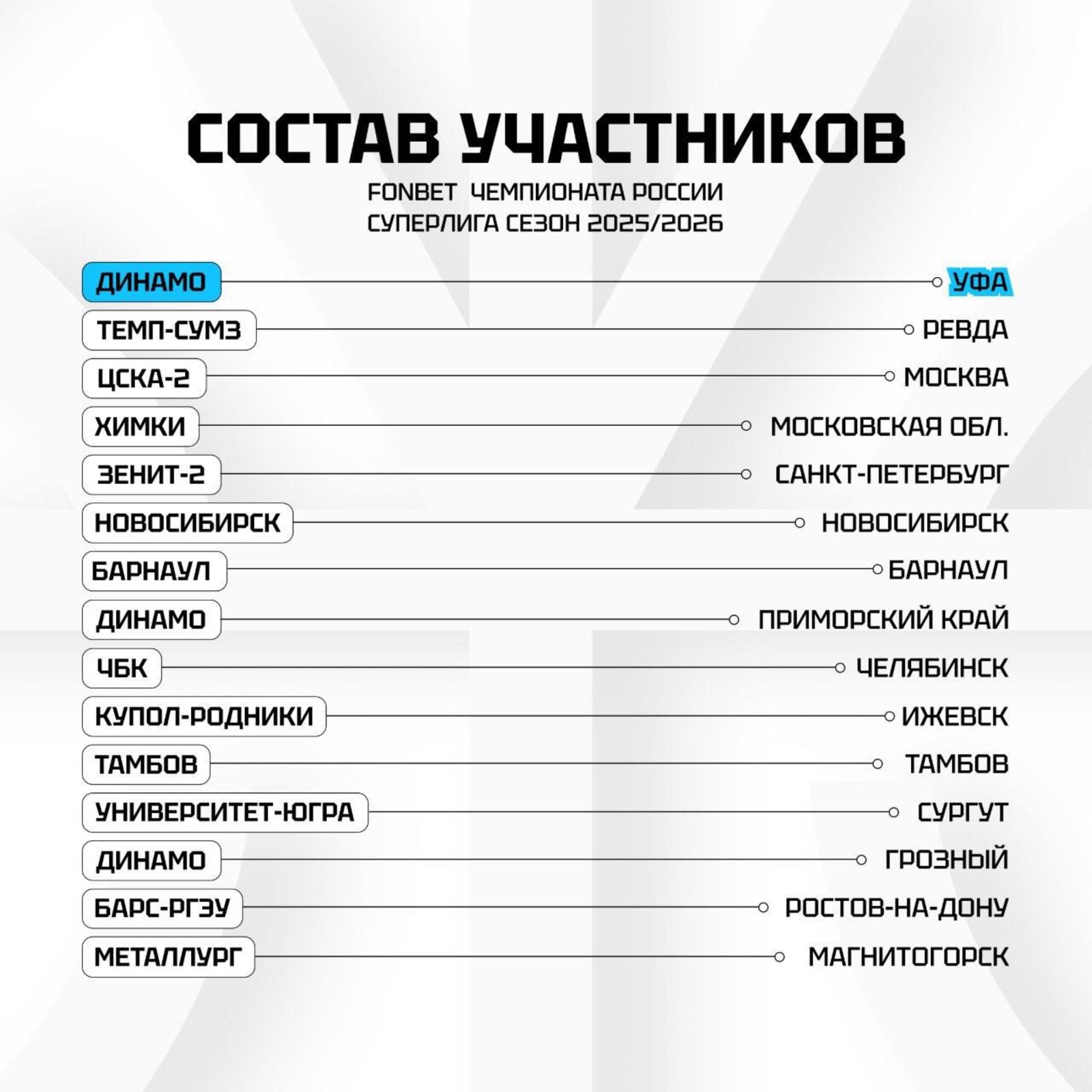 Как сообщает минспорт РБ, регулярный чемпионат уфимское «Динамо» начнёт на выезде в Ижевске — 29 сентября команда сыграет с «Купол-Родники». 2 октября «динамовцы» встретятся с прошлогодними чемпионами Суперлиги — ревдинским БК «Темп-СУМЗ-УГМК».