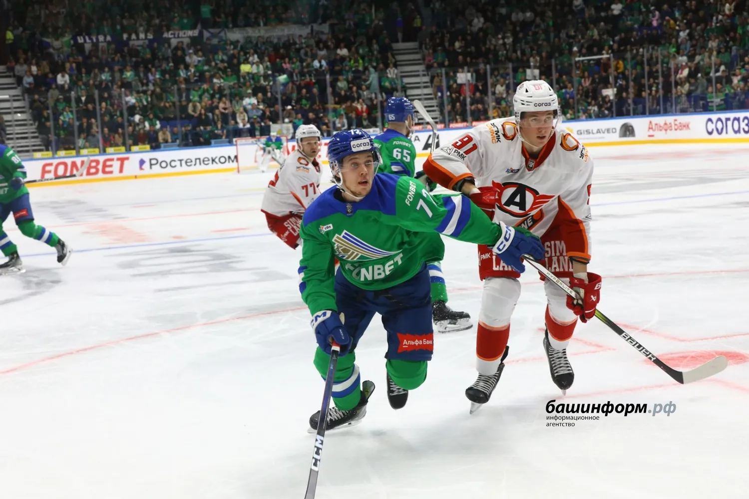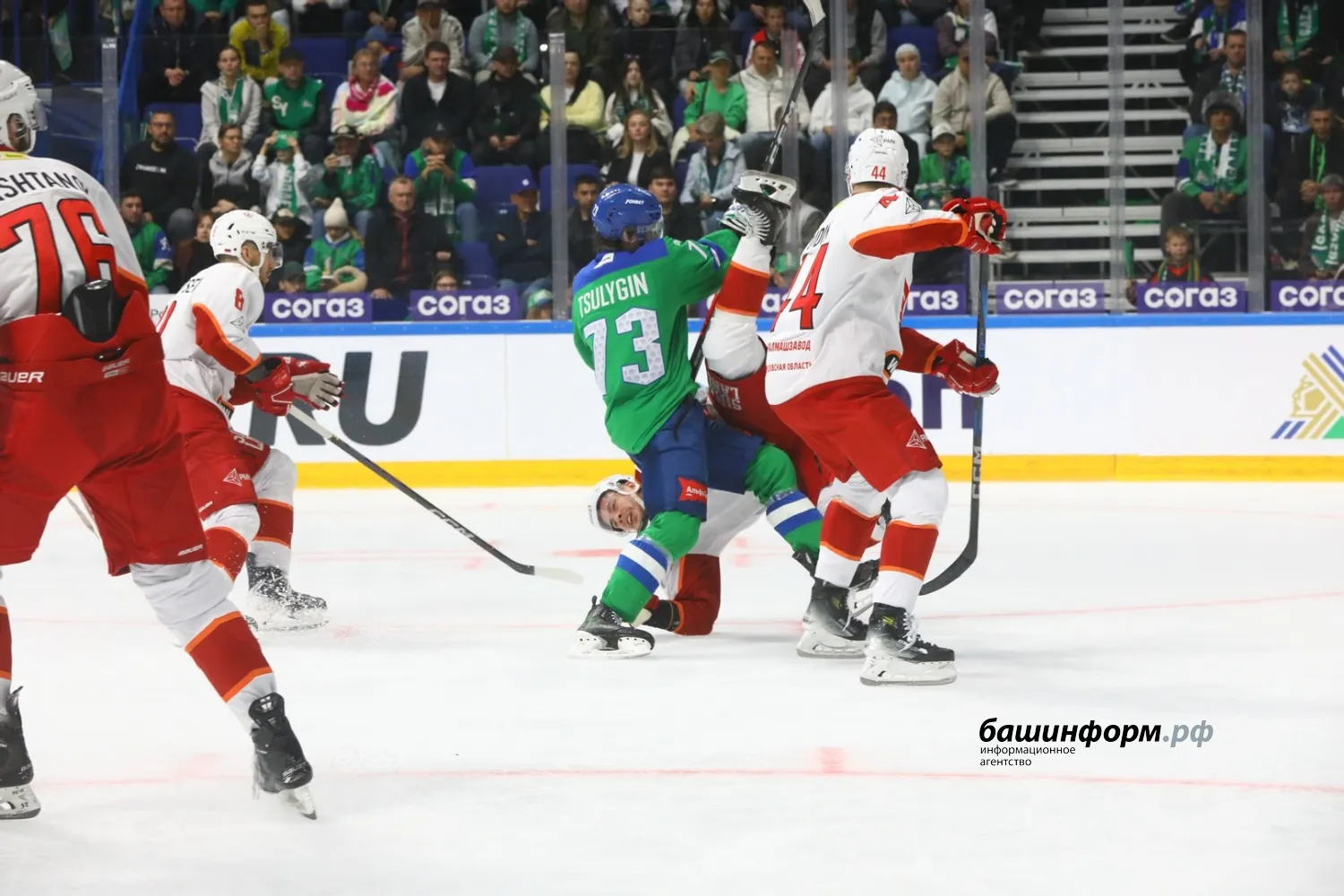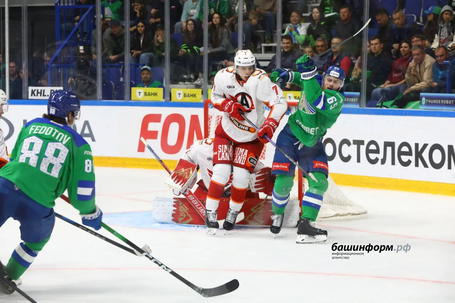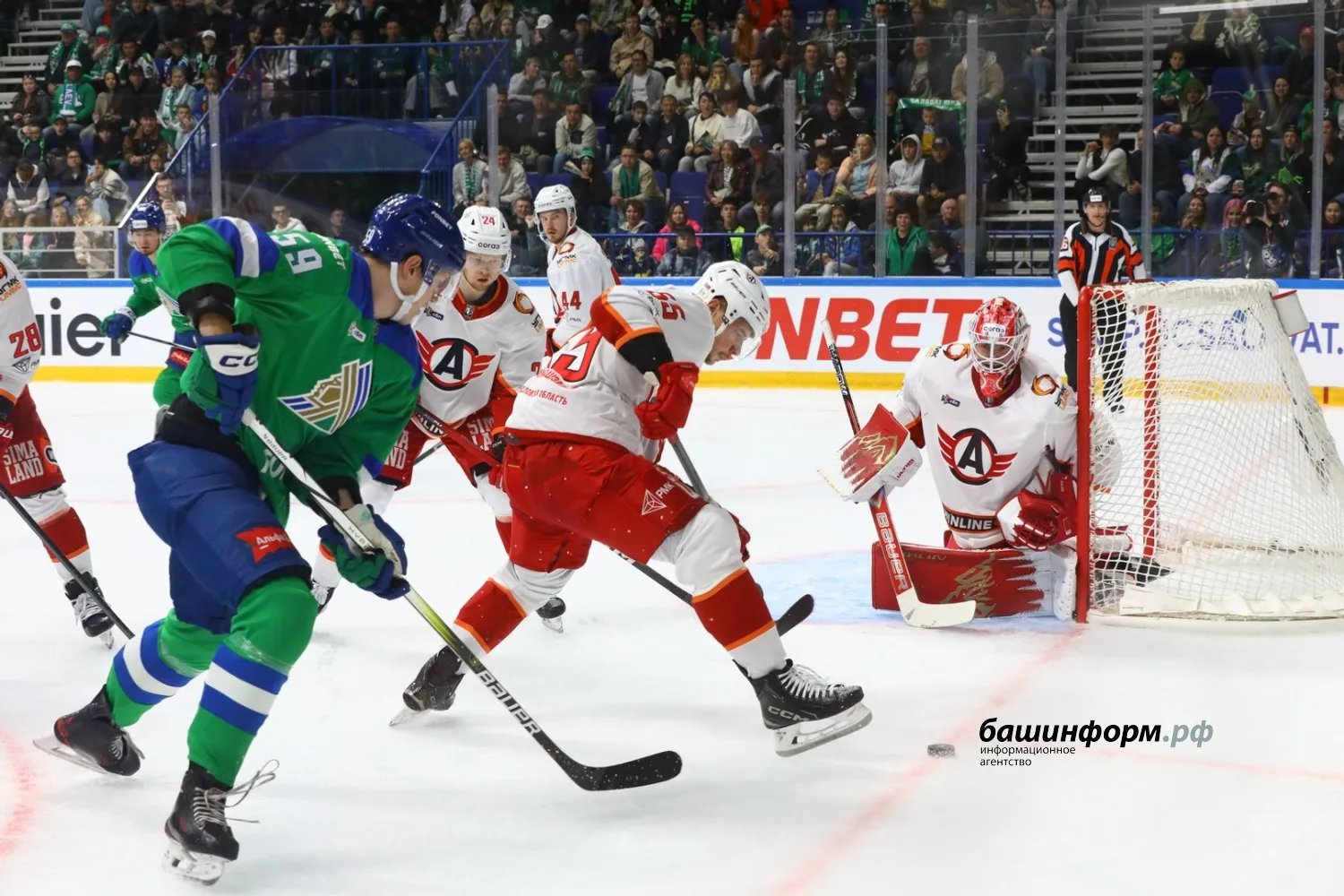 Уфимский «Салават Юлаев» в первом домашнем матче сезона уступил екатеринбургскому «Автомобилисту». Игра завершилась со счетом 1:4 в эти минуты на «Уфа-арене».