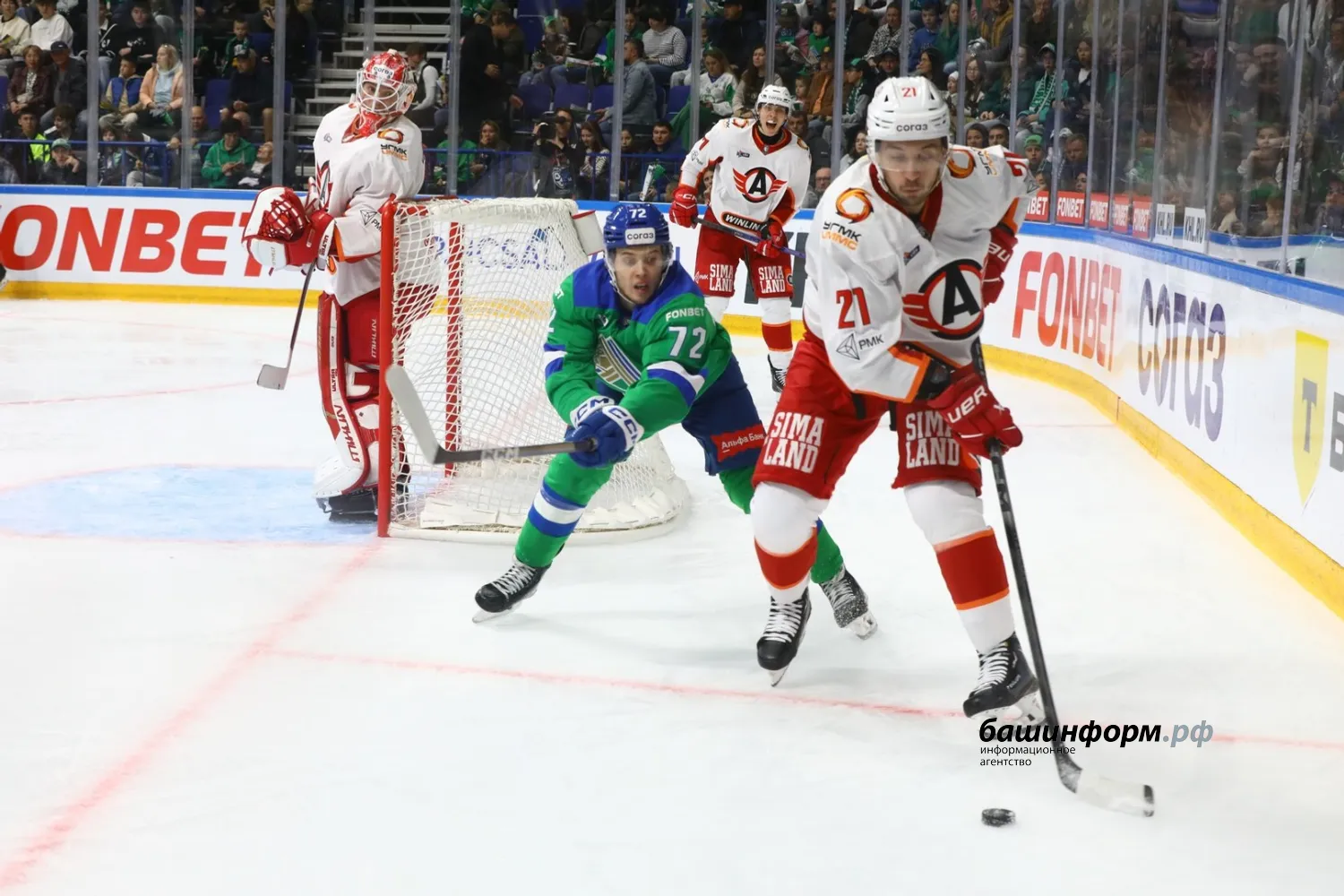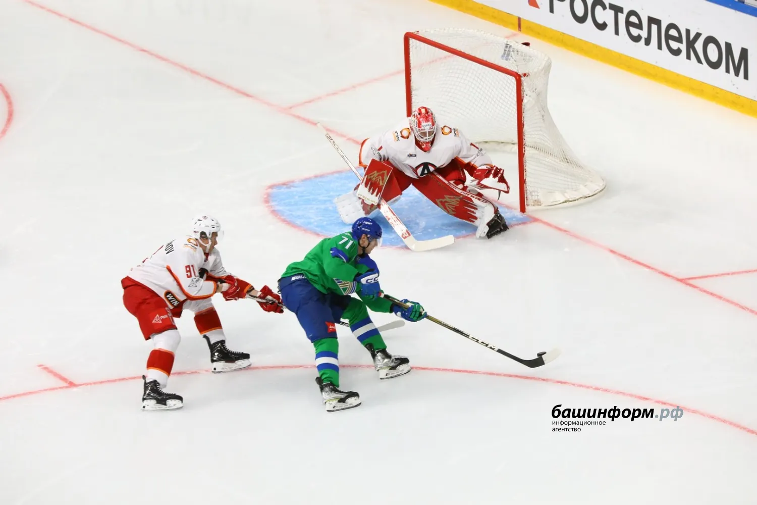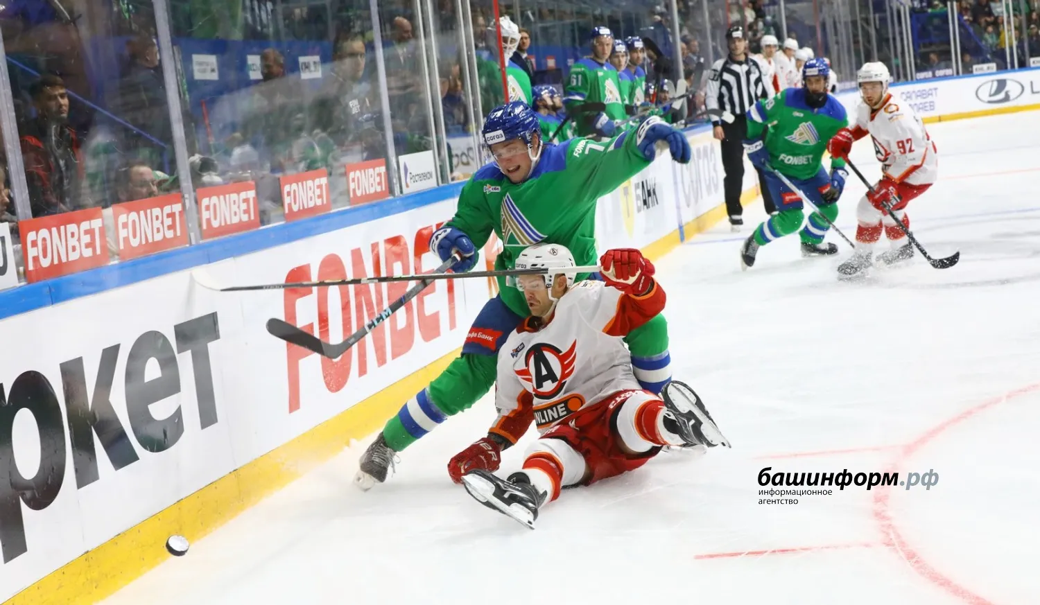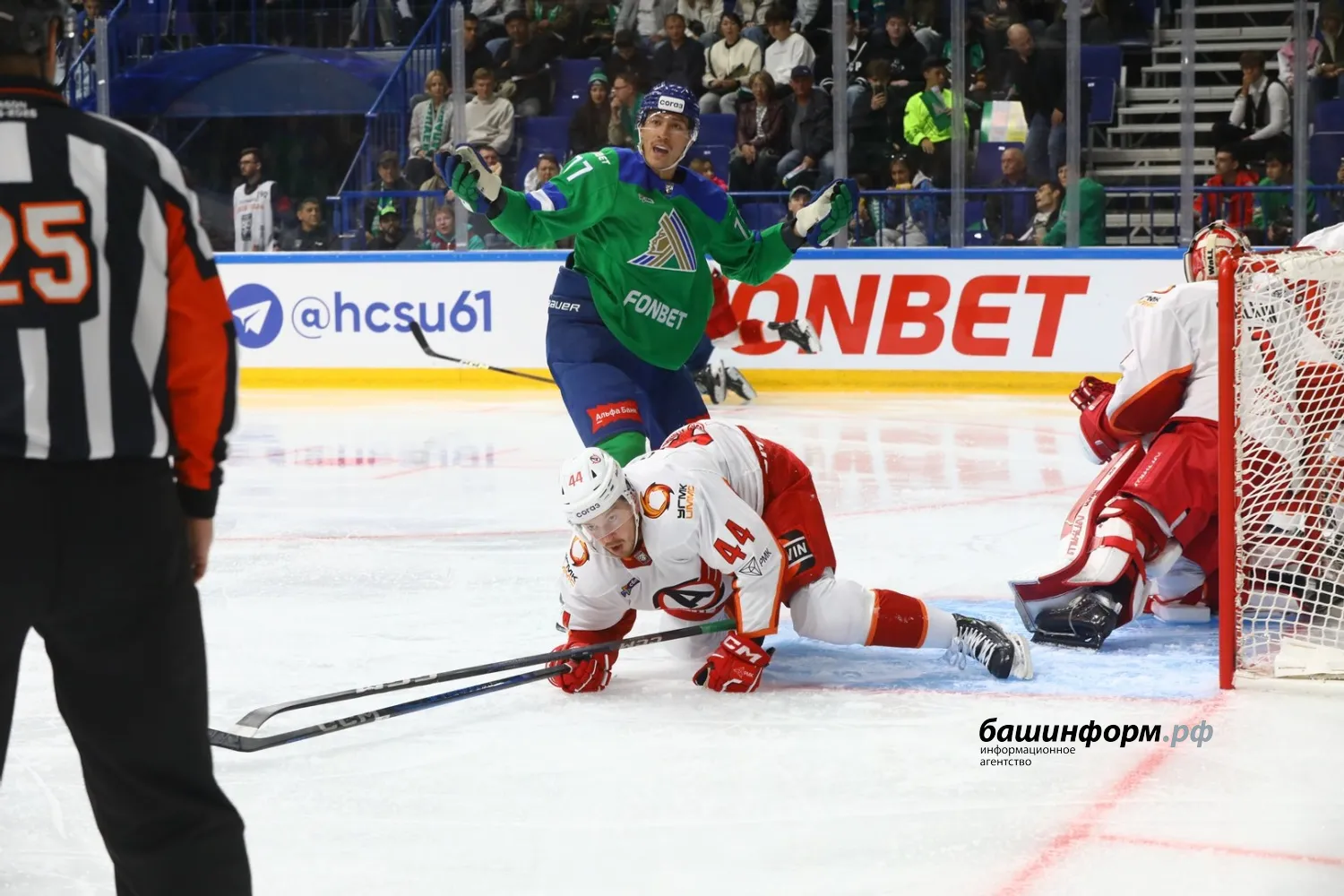 Уфимский «Салават Юлаев» в первом домашнем матче сезона уступил екатеринбургскому «Автомобилисту». Игра завершилась со счетом 1:4 в эти минуты на «Уфа-арене».