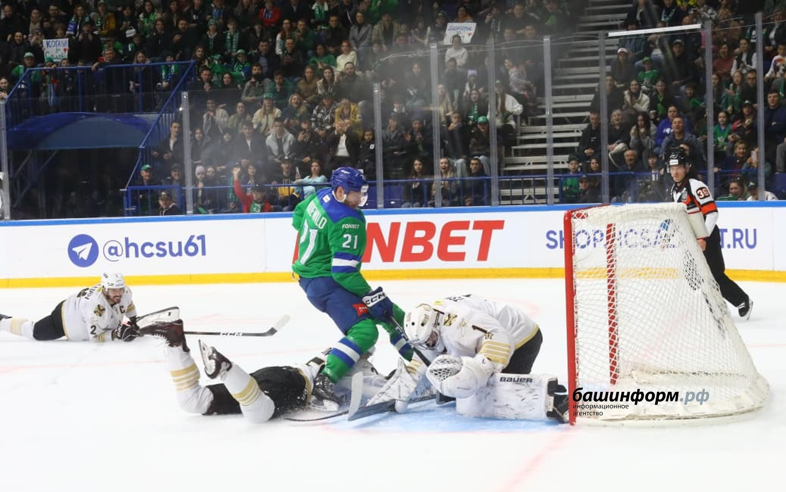 За три минуты второго периода уфимцы забросили 3 гола. Дублем отметился Егор Сучков, также очки на свой счет записали Александр Хохлачев и Артур Фаизов. Для 19-летнего Артура эта шайба стала первой в КХЛ.