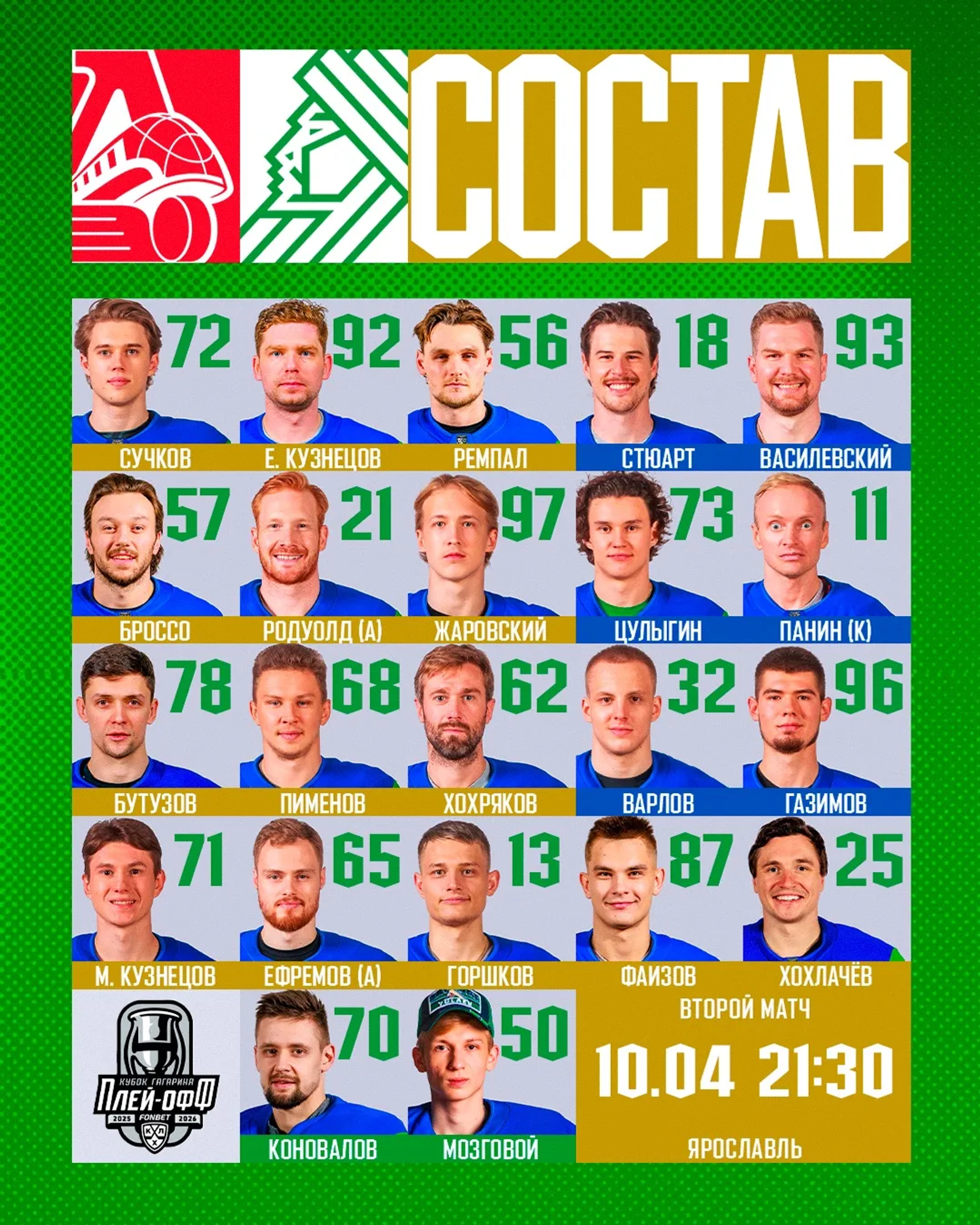 Напомним, второй матч серии между команд «Салават Юлаев» и «Локомотив» пройдет сегодня в Ярославле.