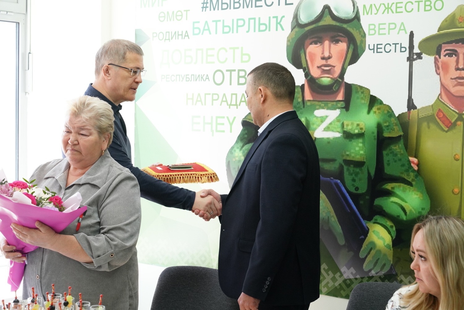 Радий Хабиров передал родным ордена Мужества и генерала Шаймуратова, которыми герои награждены за мужество и самоотверженность.