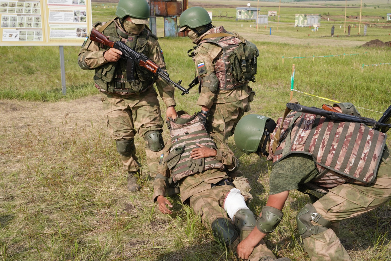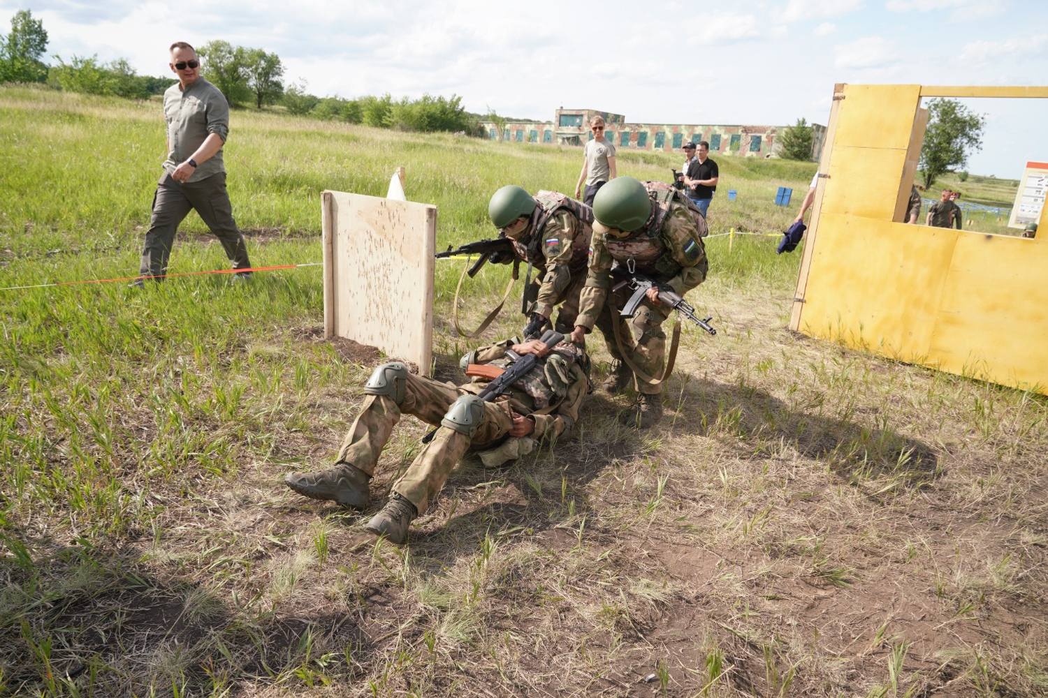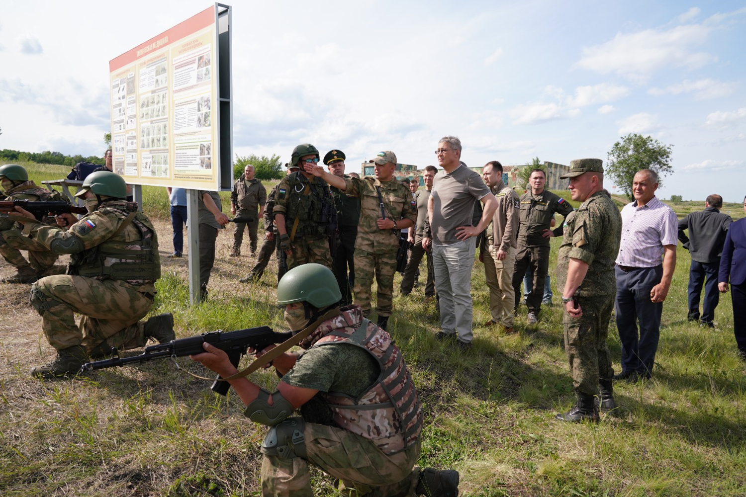 Руководитель региона понаблюдал, как бойцы проходят обучение тактической медицине, оказанию первой медицинской помощи при различных видах ранений.