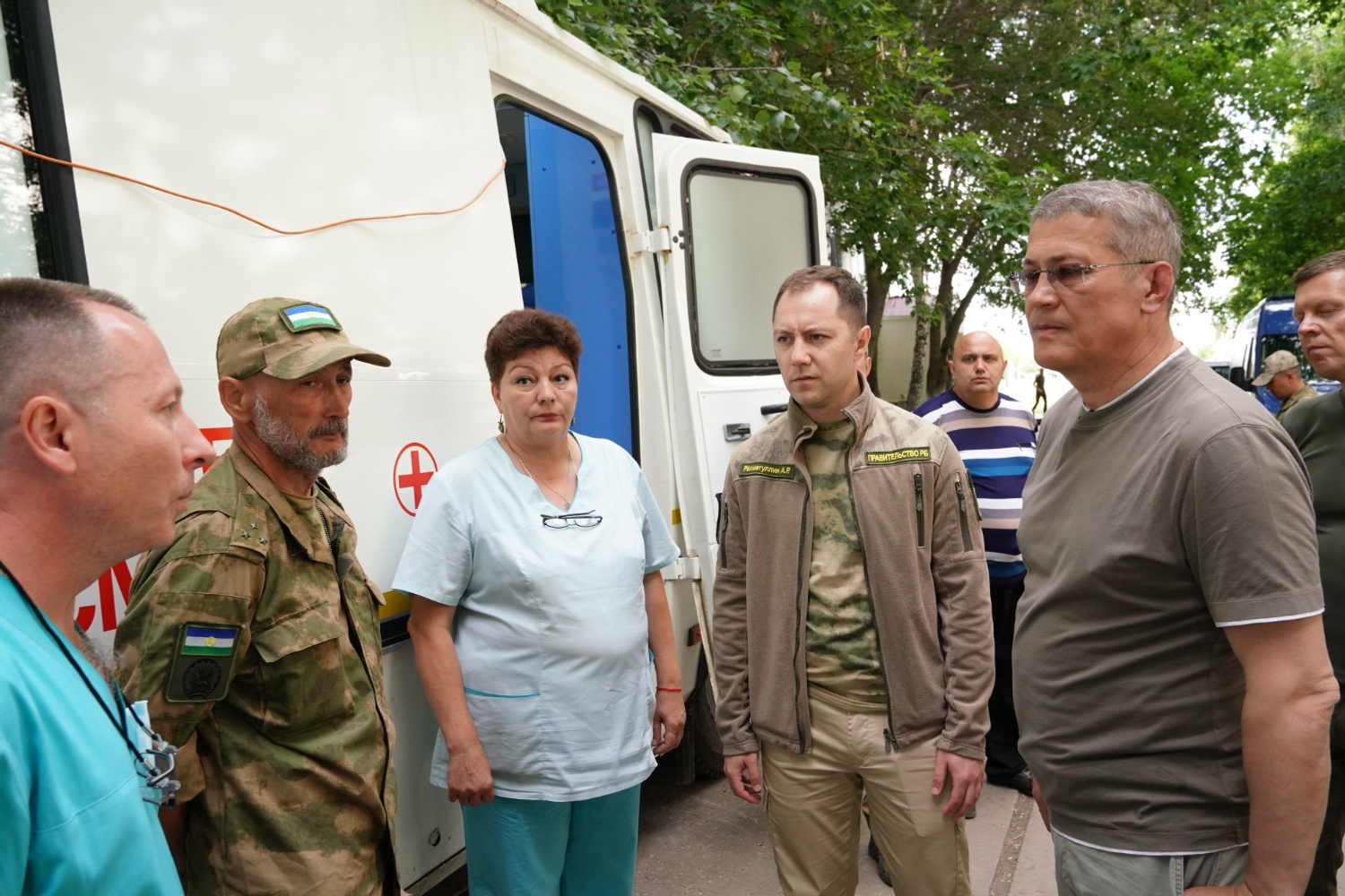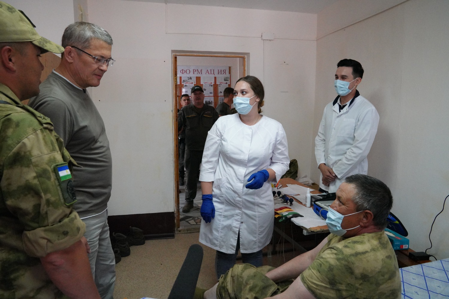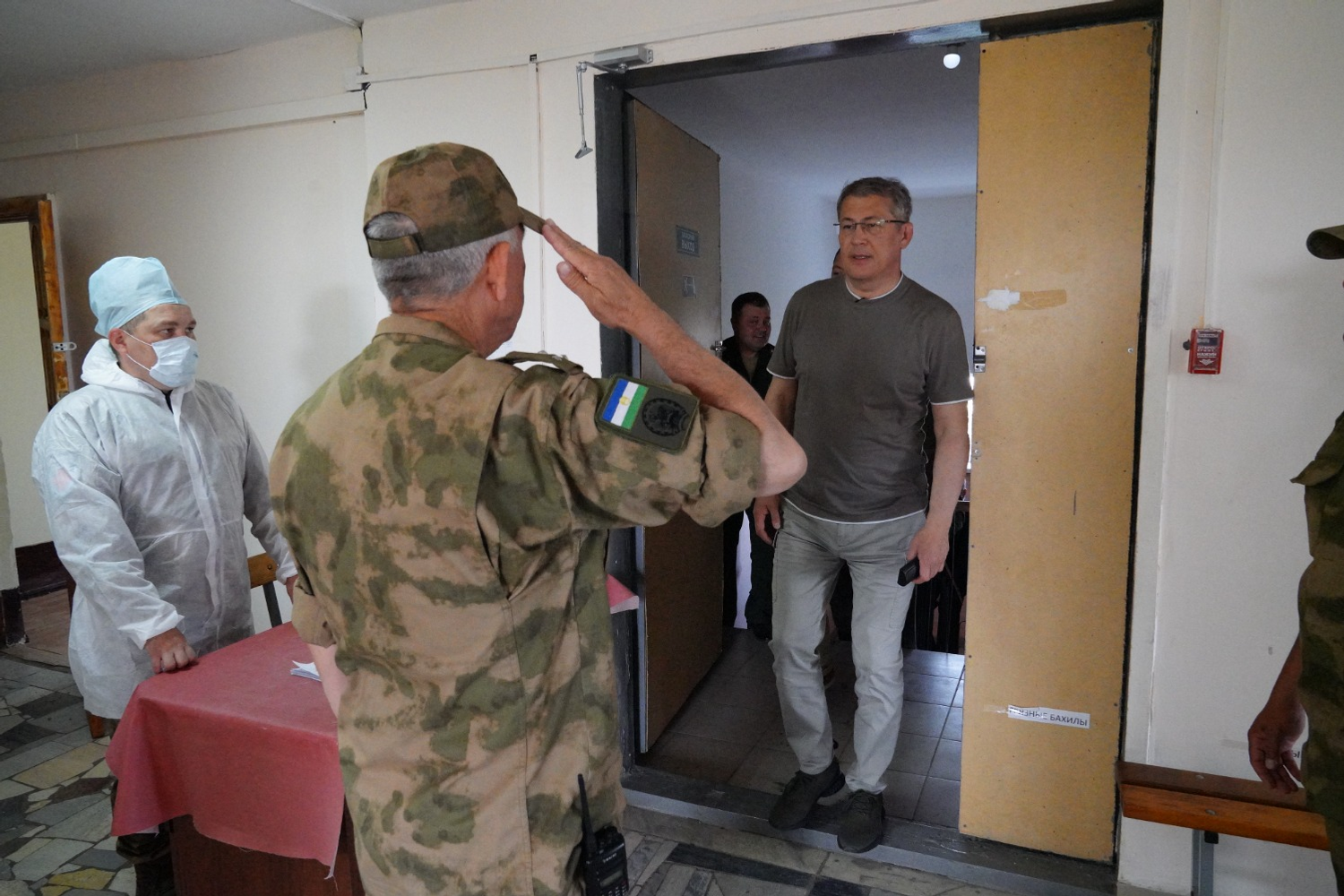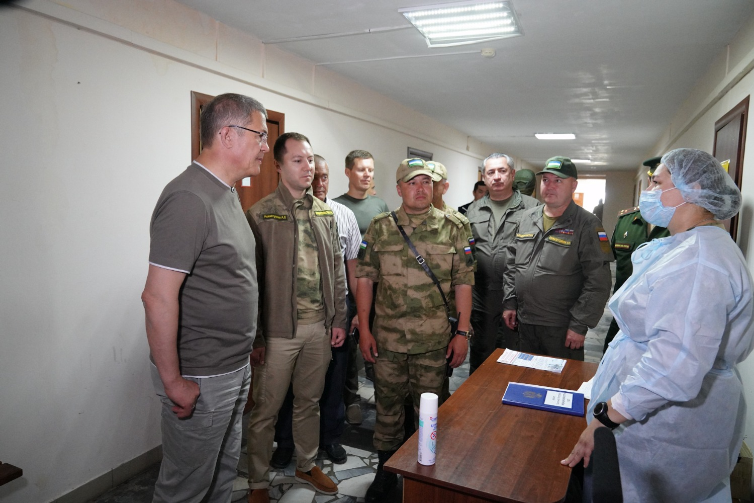 Радий Хабиров также посетил медсанчасть, которую оборудовали в одной из казарм, пообщался с медработниками и бойцами, проходящими медицинские обследования.