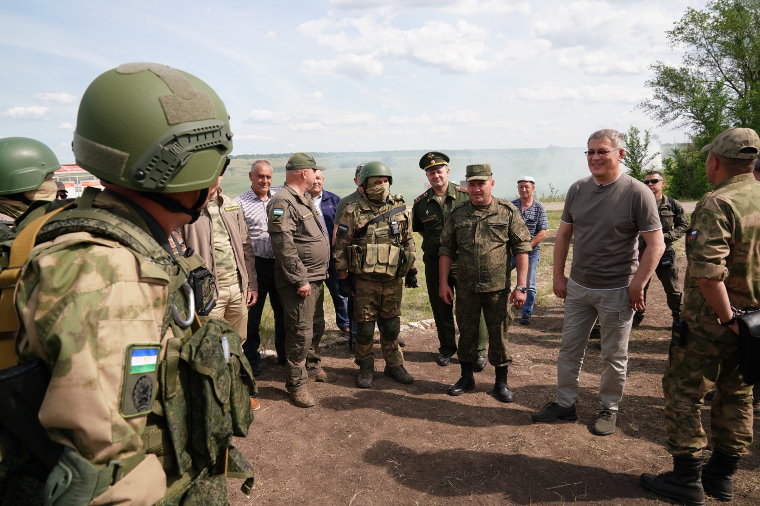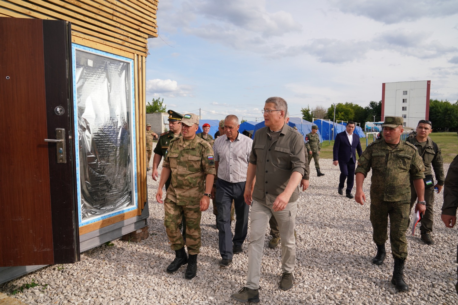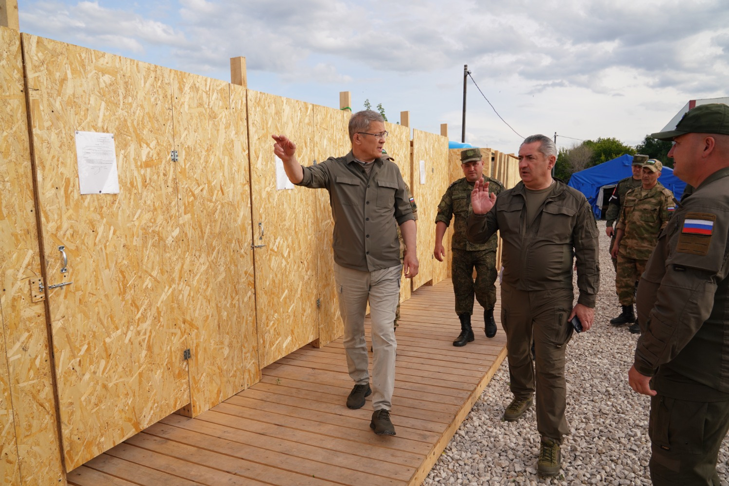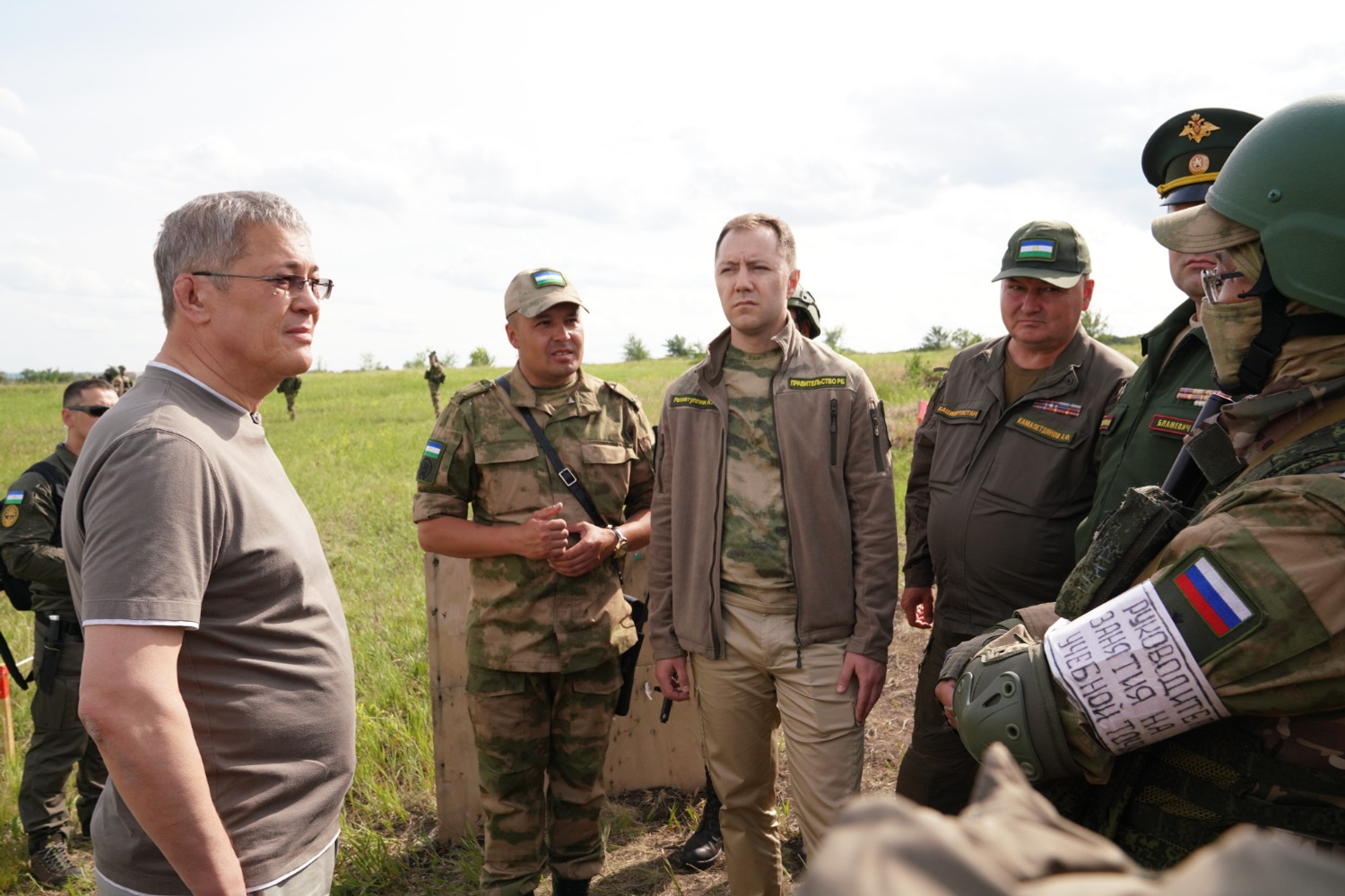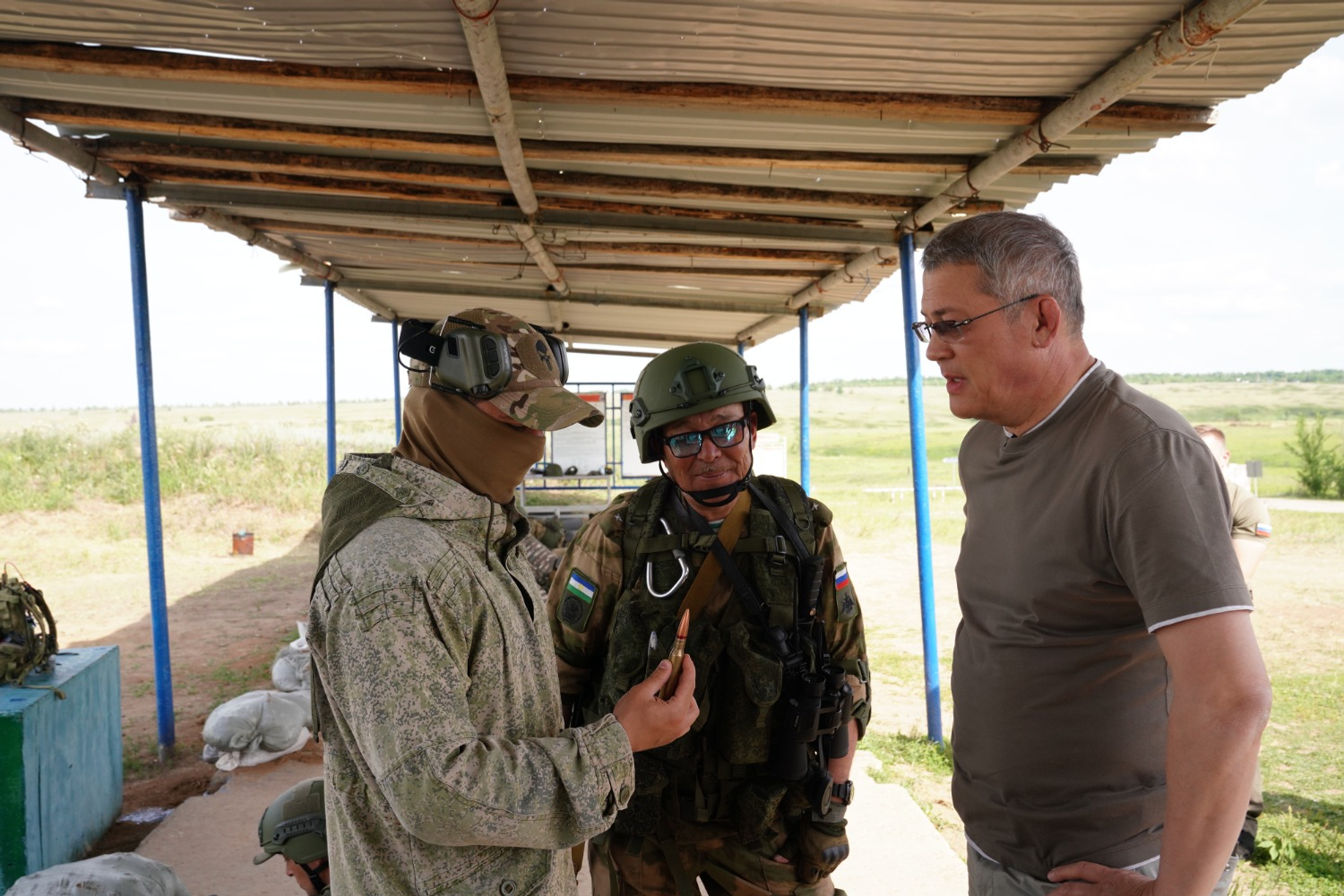 Радий Хабиров посмотрел, как проходит обучение бойцов, поинтересовался их бытовыми условиями, спросил, нет ли проблем у семей, которые остались в республике.