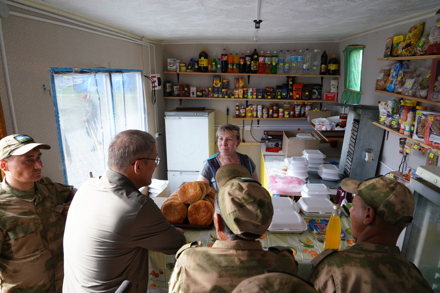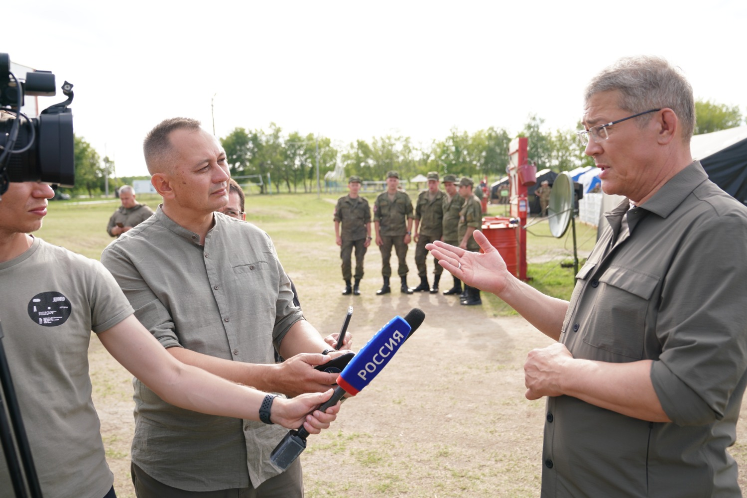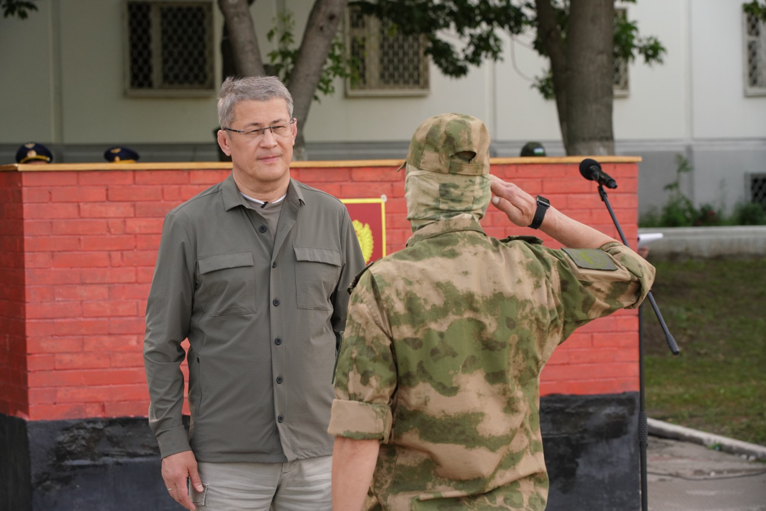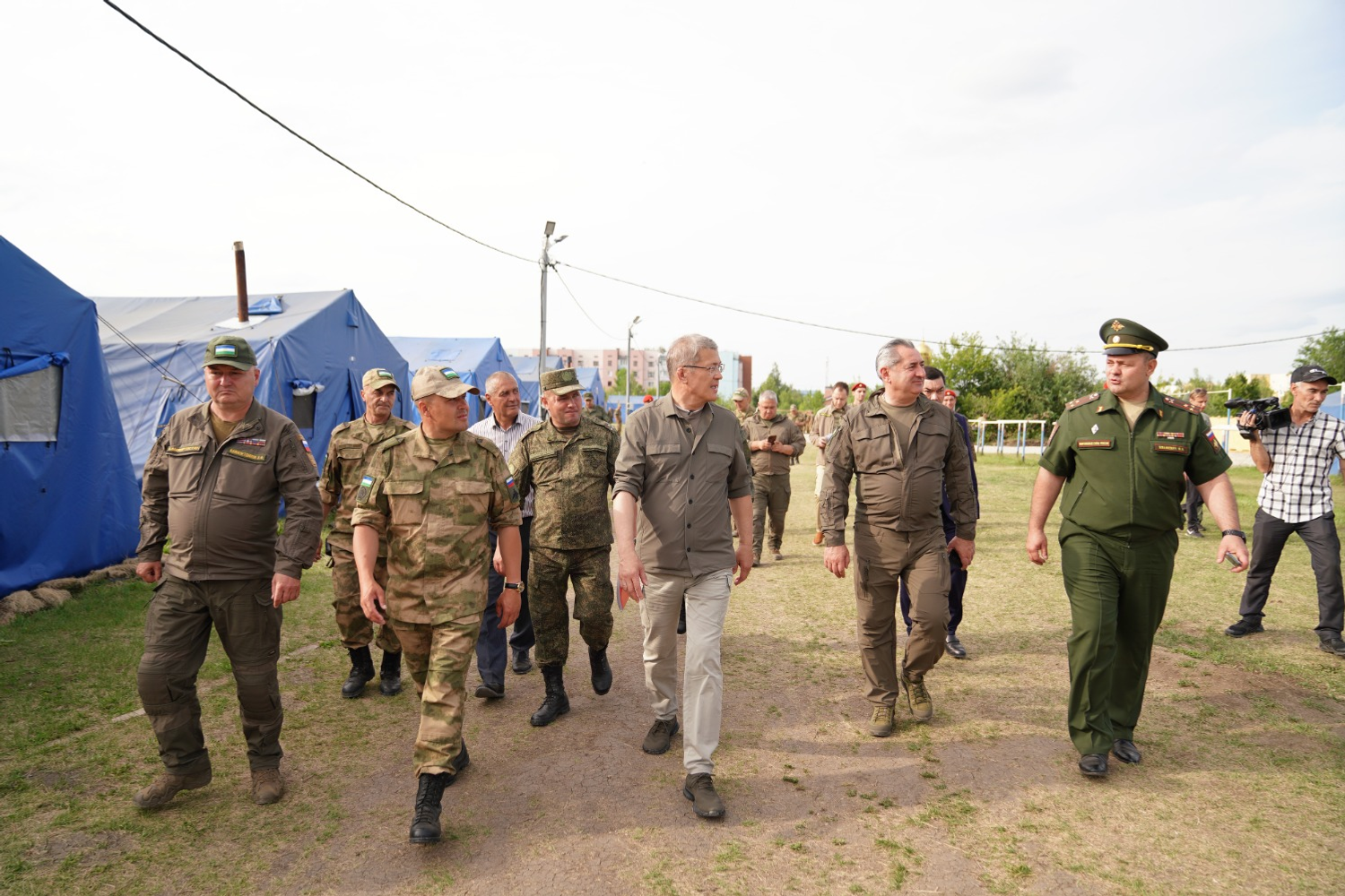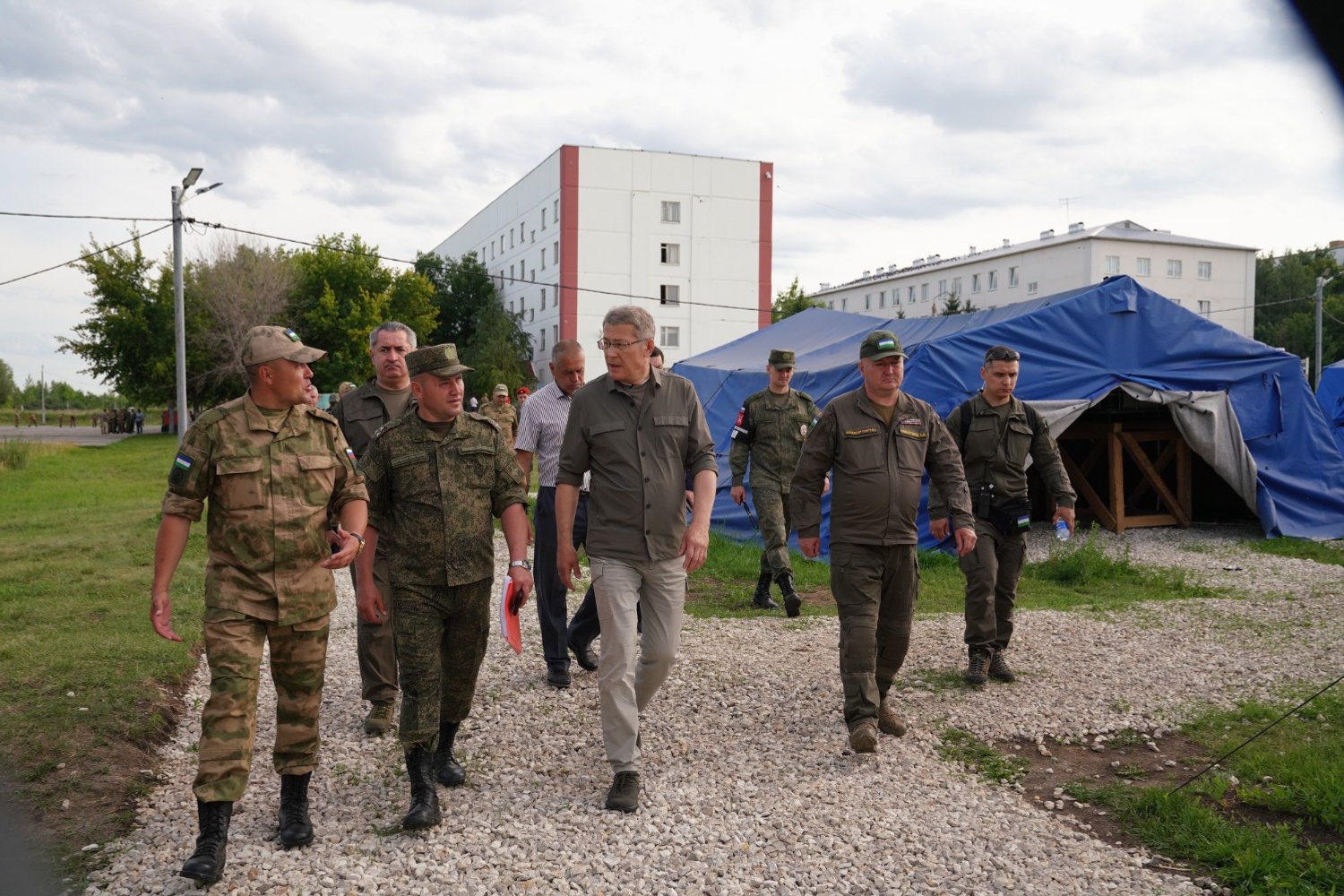 Радий Хабиров посмотрел, как проходит обучение бойцов, поинтересовался их бытовыми условиями, спросил, нет ли проблем у семей, которые остались в республике.