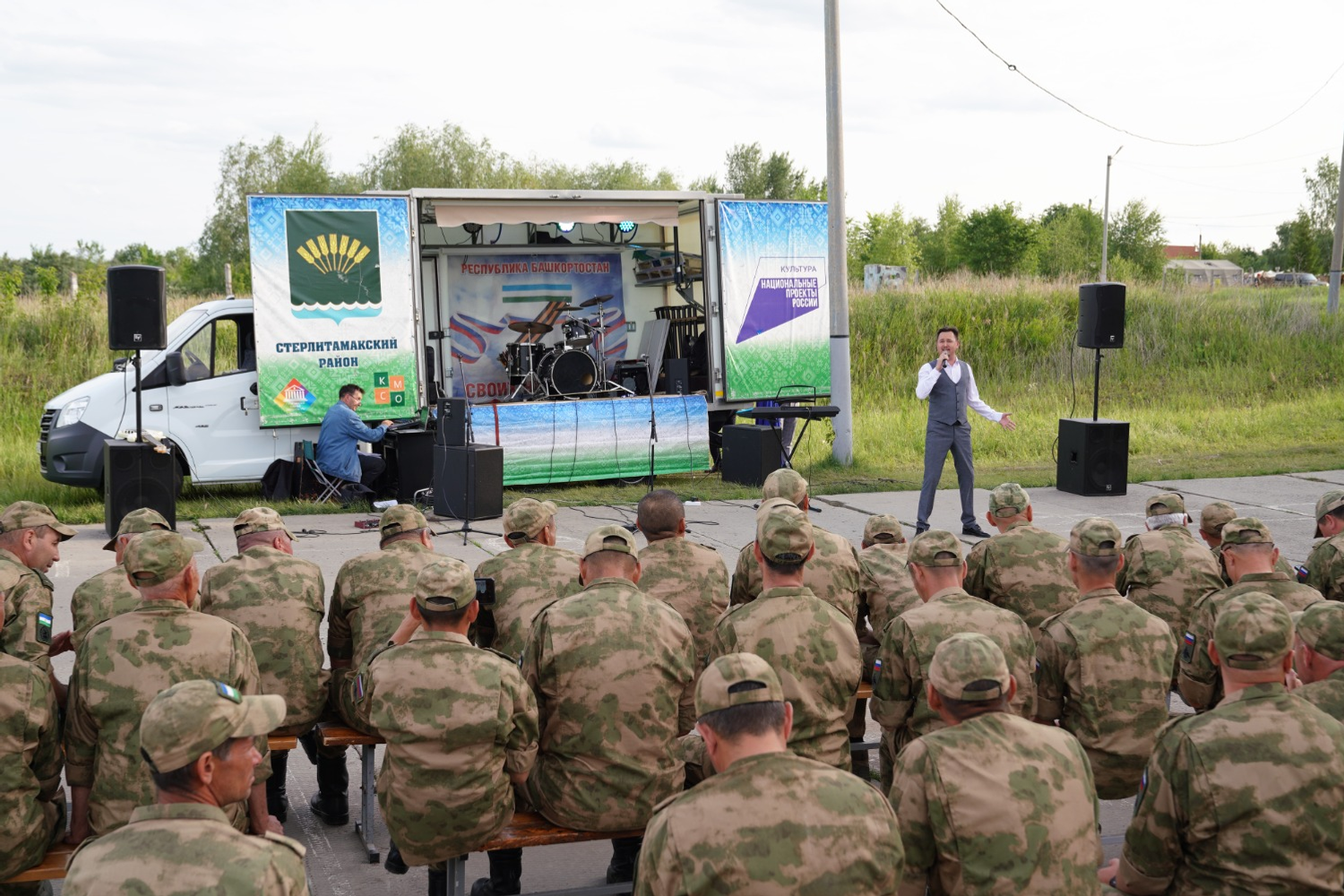 Вечером бойцы полка «Башкортостан» смогли посмотреть концерт, который им показали артисты Нефтекамской филармонии, а также коллективы из Ишимбайского и Стерлитамакского районов.