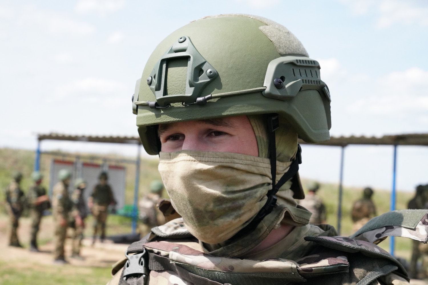Сами бойцы признаются, что вначале было тяжело находиться на полигоне целый день в полной боевой выкладке, в касках и бронежилетах.