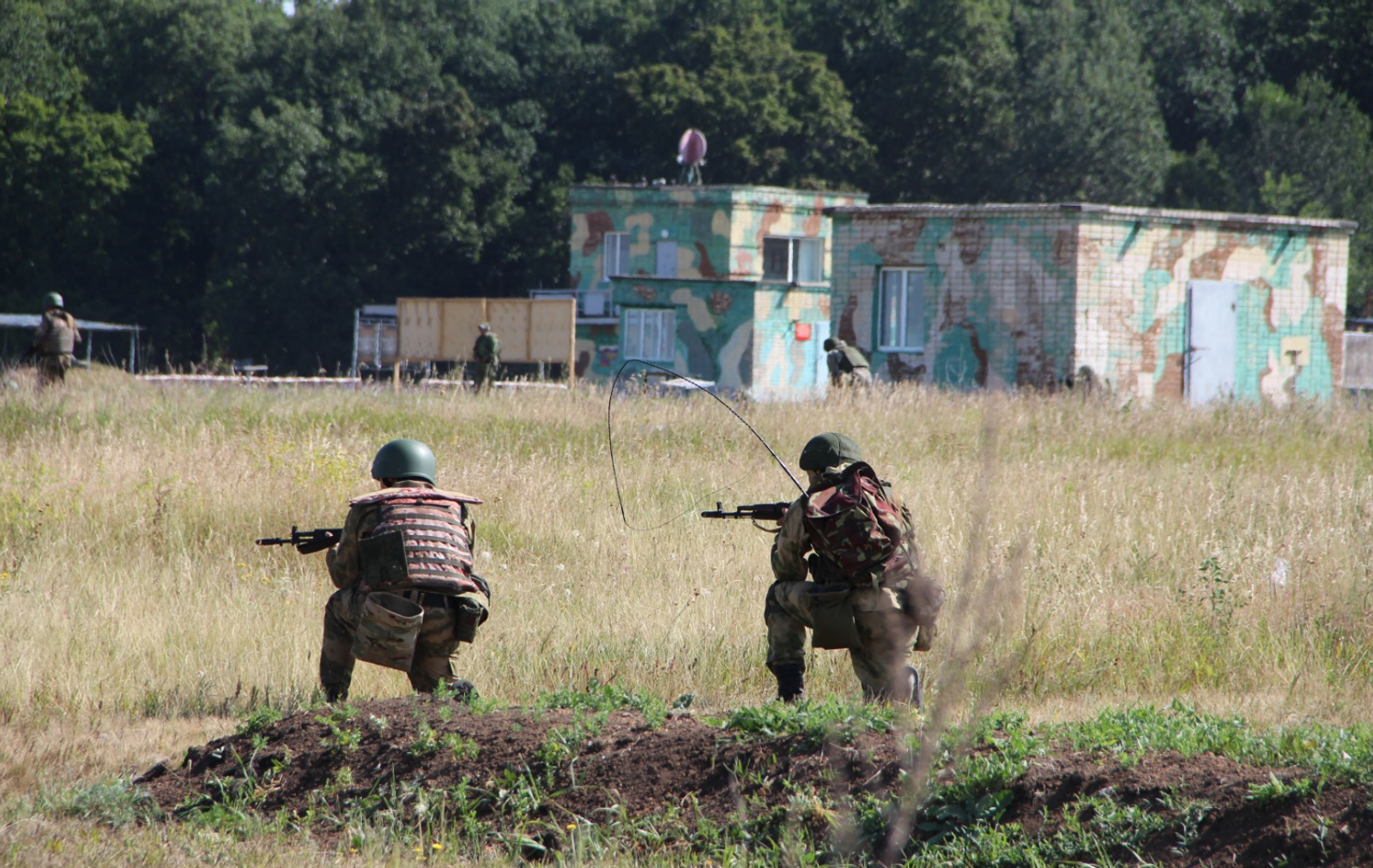 Итак, звучит команда «Готовность номер один». Над полигоном тишина. Наконец, поступила команда приступить к операции по захвату и обезвреживанию «противника». Штурмовики десантировались с бортов бронированных «Уралов». Они заняли свои позиции и после оценки обстановки выдвинулись цепью к намеченной цели. Бойцы идут парами, при этом каждая двойка контролирует перемещение товарищей и прикрывает друг друга. Звучат команды: «Встал», «Пошёл». Бойцы двигаются спокойно, без суеты, но сосредоточенно. Затем пехоту «противника» накрывает огонь гранатомётов АГС-17 («Пламя»). Тут же к работе приступают миномёты, их задача — уничтожить «вражескую» боевую технику. За работой штурмовиков также наблюдали операторы беспилотных летательных аппаратов.